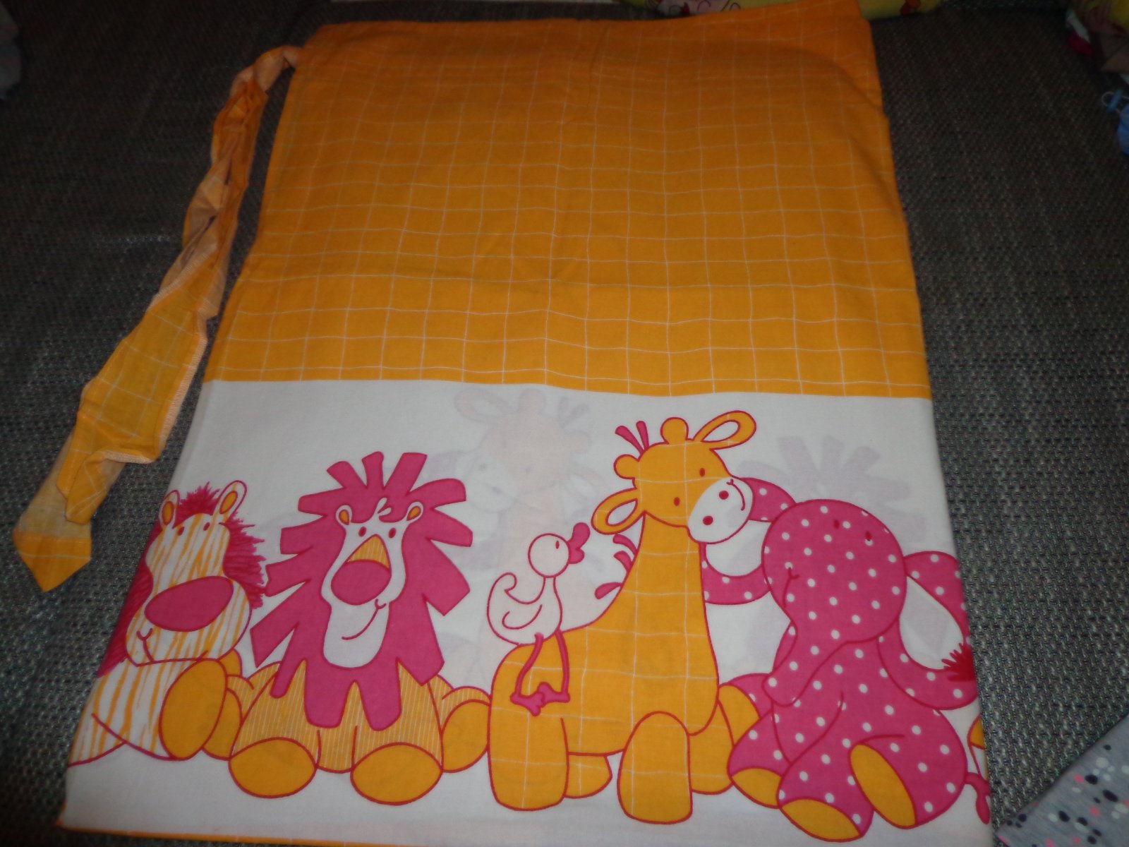 nepoužité, rozbalený len kvoli foto. Hore je tunel zo šnurkami na zavesenie a priviazanie . Dá sa pouzit aj ako látka na hocičo iné kludne aj na záves šírka cca 205cm , dlzka 140cm, je to 100% bavlna