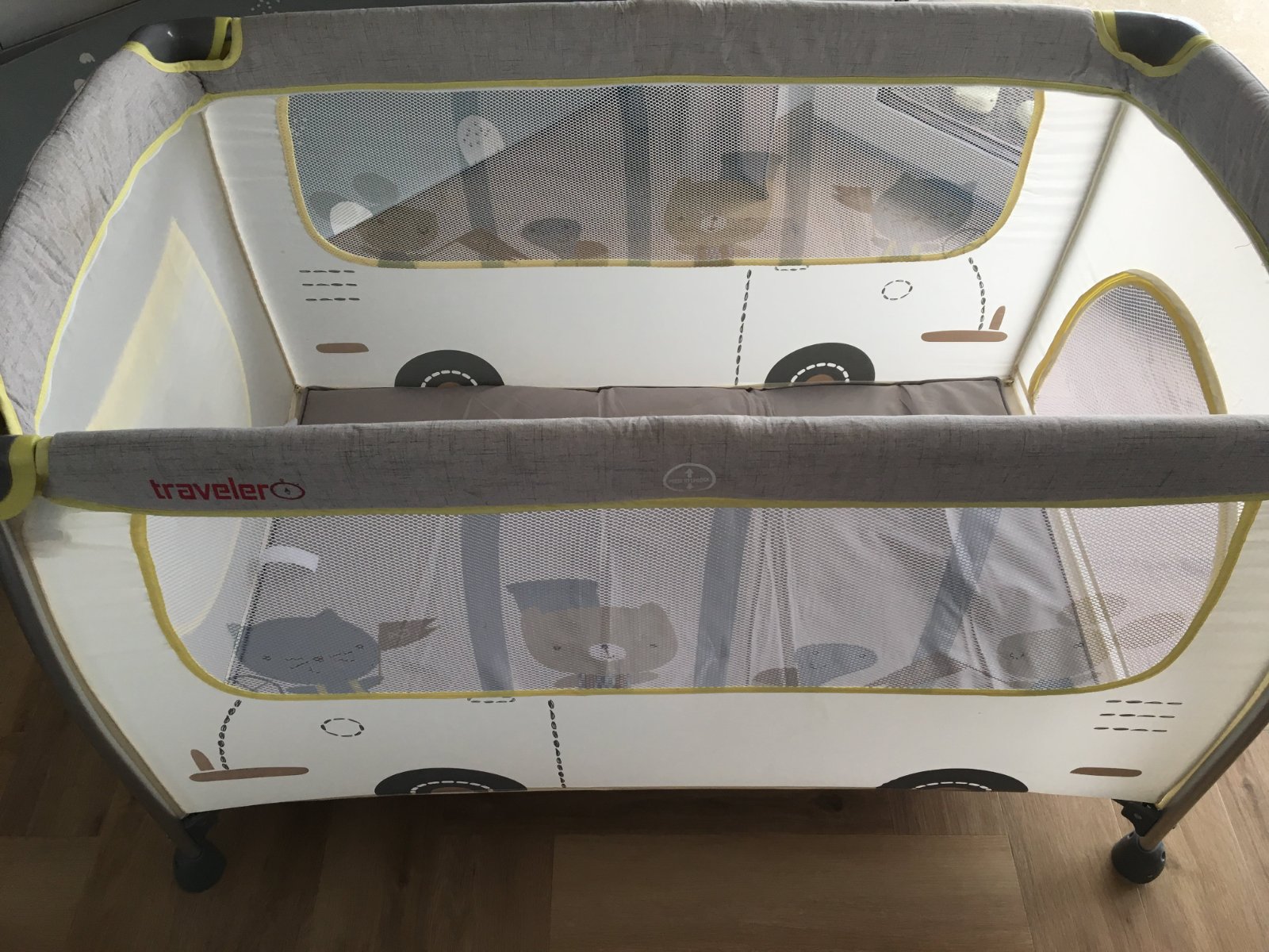 Váha dieťaťa do 15 kg, veľmi odolná, ľahká konštrukcia, dve kolieska na posúvanie postieľky, matrac, moskytiéra, cestovná taška do postieľky, pohodlný a jednoduchý systém rozkladania. Odnímateľný kolotoč s ručne navinovacou hudobnou skrinkou. Bočné vrecko. Dodatočný bočný vchod zapínanie na zips. Prebaľovací pult má vrecko, bezpečnostný pás a rúčky, ktoré ho upevňujú k bokom postieľky, aby sa nešmýkali. Demontovaný prebaľovací pult je možné pomocou špeciálnych úchytov pripevniť na bok postieľky.