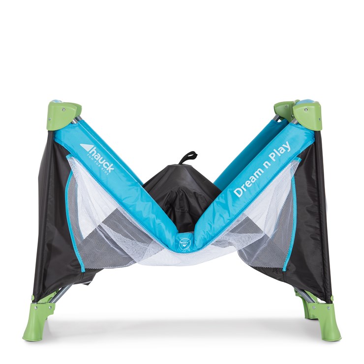 Dvakrát rozložená a použitá, výborný stav bez známok opotrebenia alebo kazu. Cestovná postieľka Hauck, rozmer 120x60 Water-Blue. Pevná stabilná konštrukcia. Má dve časti - samotná konštrukcia plus tenká podložka. Nosiť sa dá v praktickom puzdre na traky.
