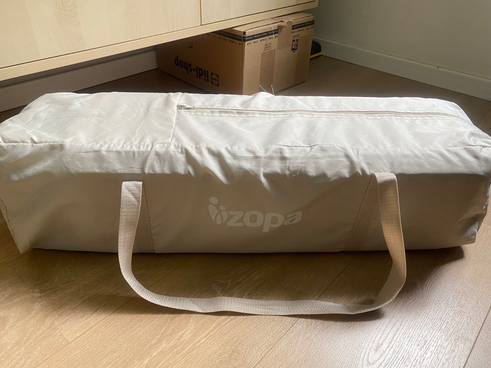 Predam pouzivanu rozkladaciu cestovnu postielku Zopa Camping 2, v bezovej farbe. Je plne funkcna, avsak s mensimi znamkami opotrebovania a je potrebne si ju vycistit. Pridavam k nej aj dodatocny detsky matrac, ktory ma potah, ktory je mozne rozzipsovat a oprat.