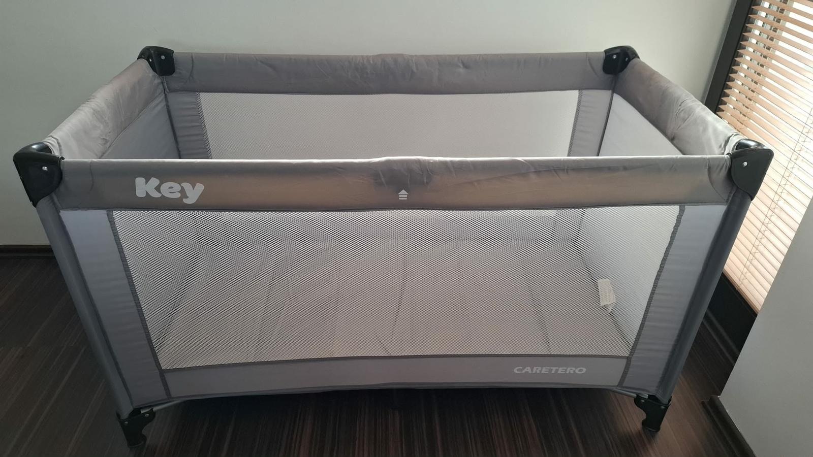 Pevna cestovna postielka s kolieskami na lahsiu manipulaciu a odnimatelnym prebalovacim pultom a vlozkou pre novorodenca.