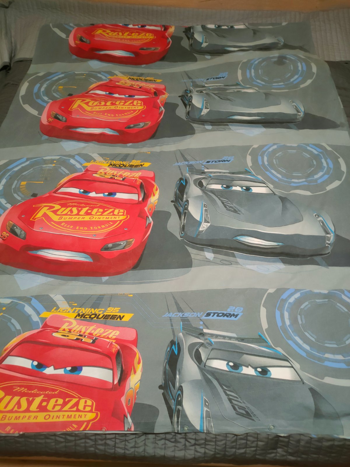 Krásna detská posteľná súprava (obliečka, vankúš) s motívom McQueen. Rozmer 140x200, 💯% bavlna.