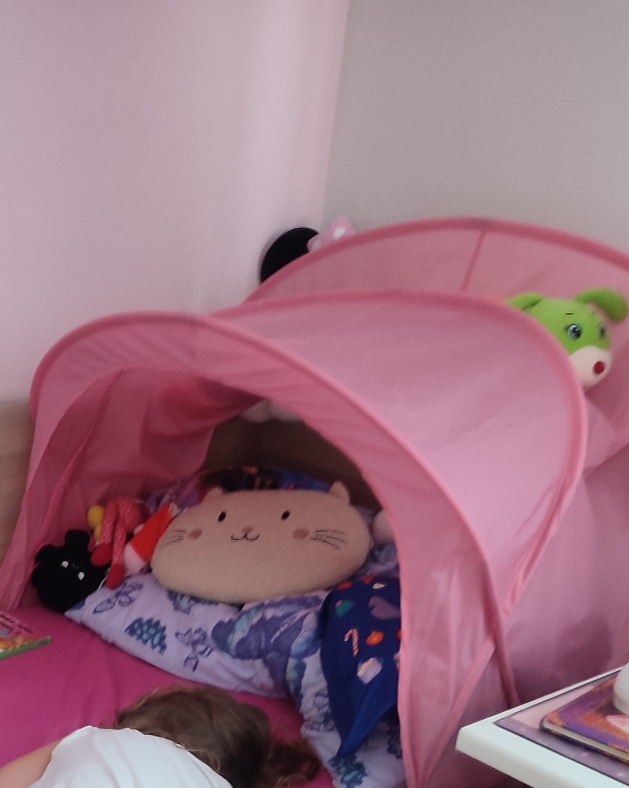 Predám IKEA SUFFLETT ružový baldachýn na detskú posteľ v zachovalom stave bez poskodeni.. Vsúva sa pod matrac. Pre detské postele šírky 70/80/90cm.