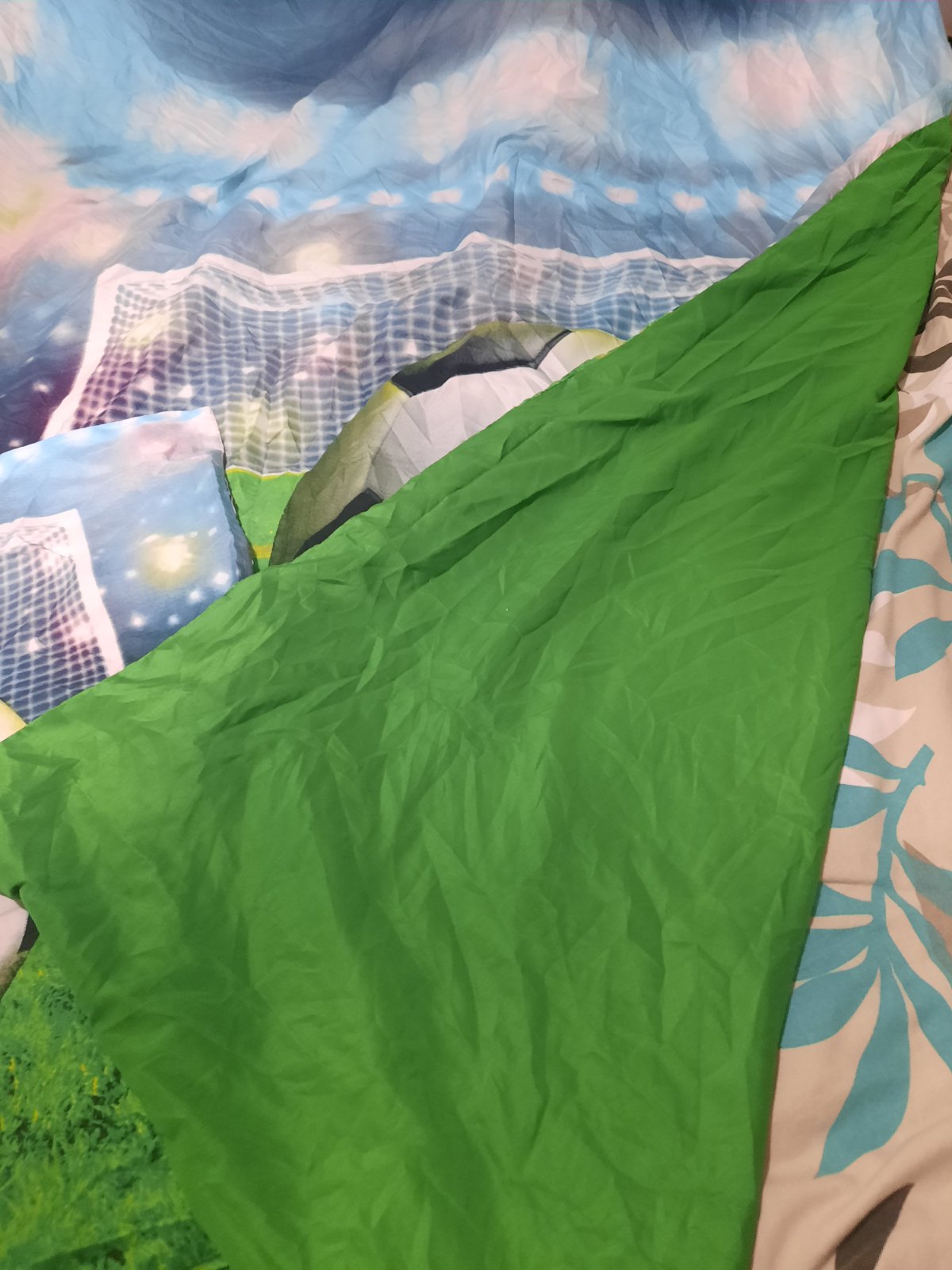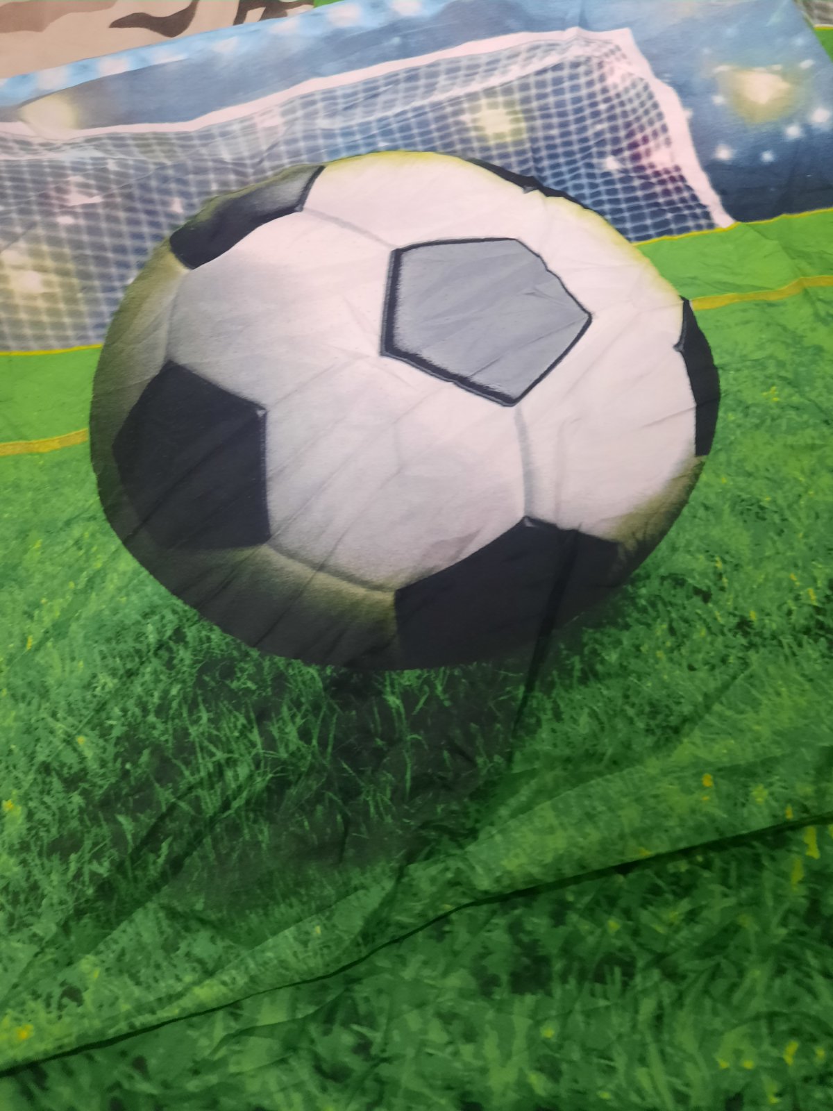Raz pouzite Synovi nevyhovuje polyester zozadu väčšia obliečka zelená a menšia ma z oboch futbalovú potlac