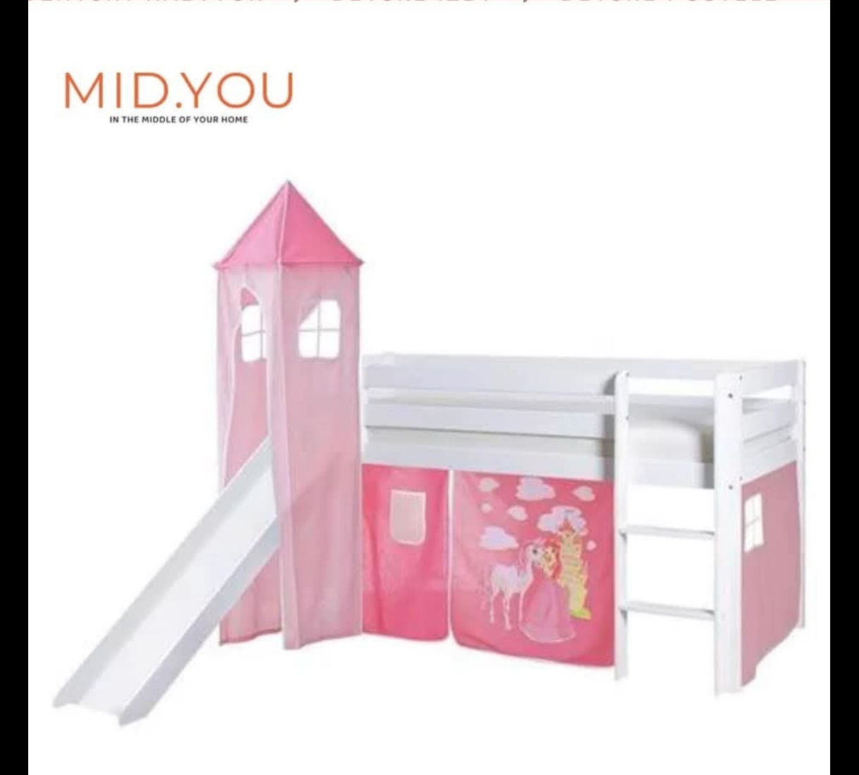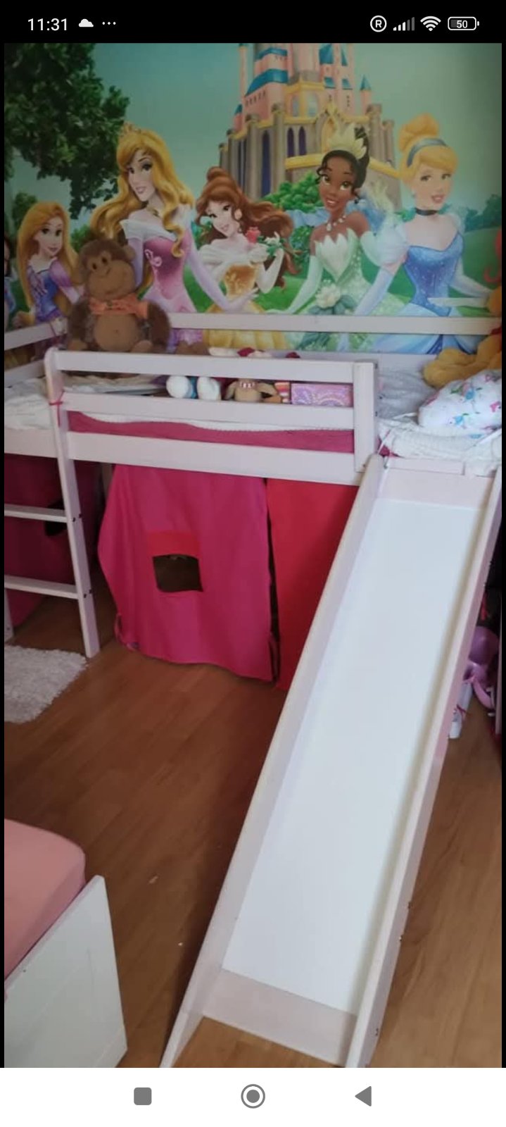 Predám vyvýšenú dievčenskú posteľ so šmýkačkou a vežičkou + matrac zdarma.