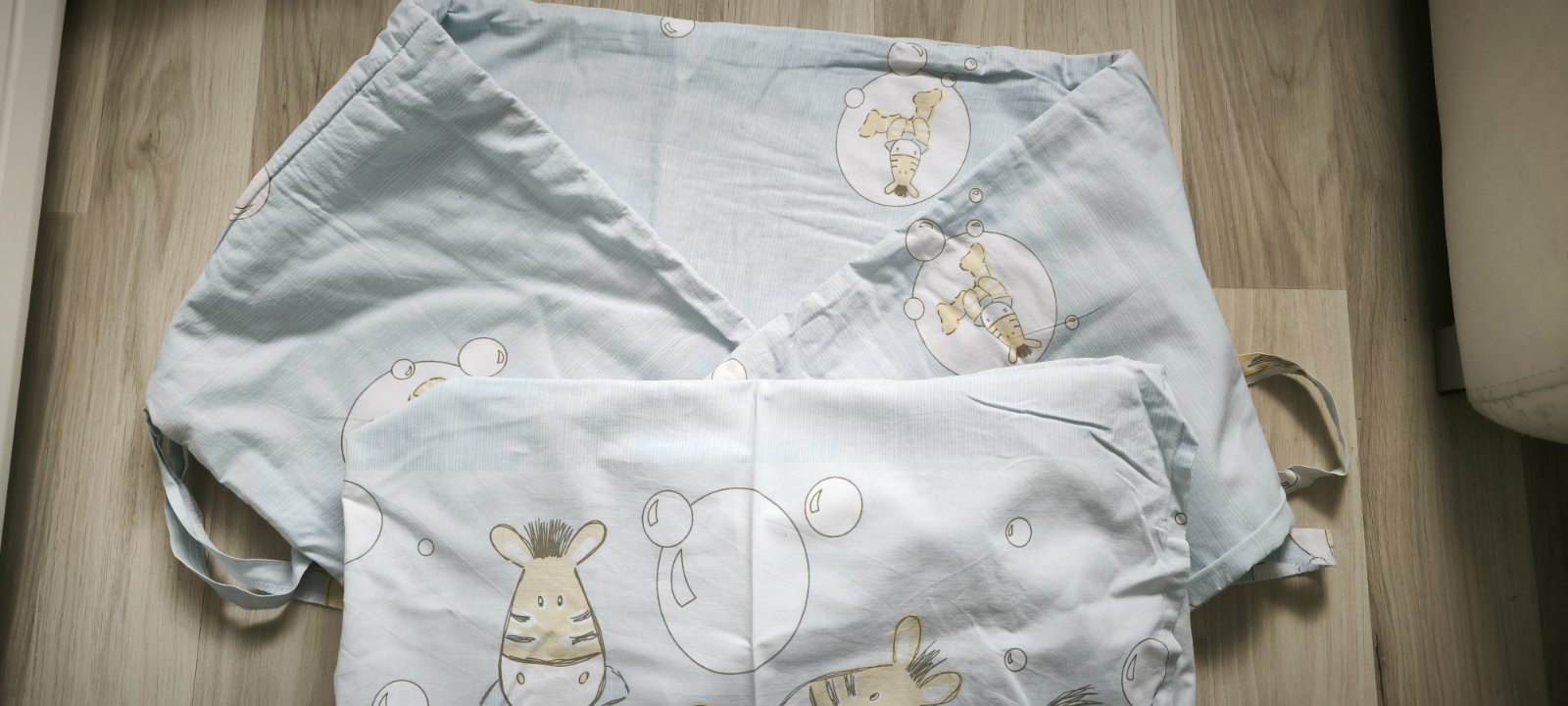 Predám obliečky+vankúš+paplón pre bábätká/menšie deti. Farba bledo modrá.Je k tomu vankúš, paplón, obliečka na vankúš, obliečka na paplón a zástena okolo postieľky. Vankúš rozmery 38x47cm, paplón rozmery 83x110cm, mantinel do postieľky šírka 27cm,dĺžka 165cm. Mám ešte aj frote obliečku na matrac,môžem pribaliť,ale tak je bledofialová farba.