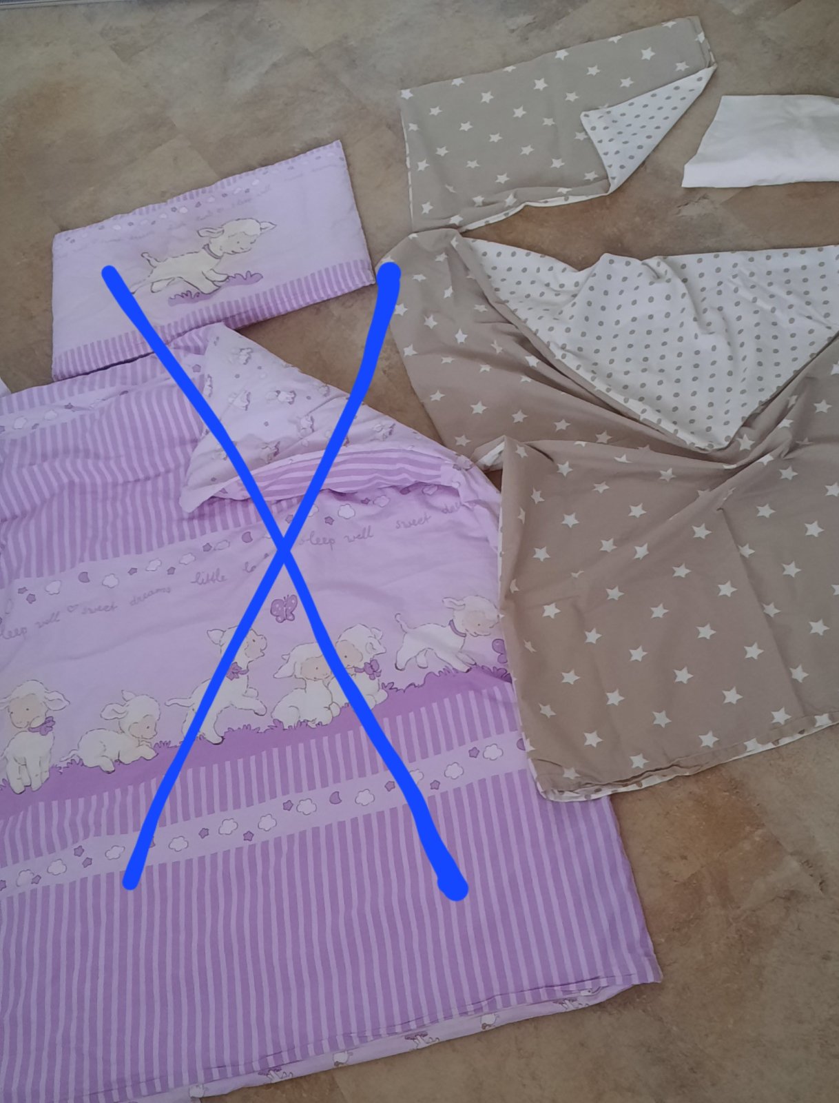 Používané obliečky do detskej postieľky. Farba Uni aj pre chlapca aj pre dievča. Bez poškodenia