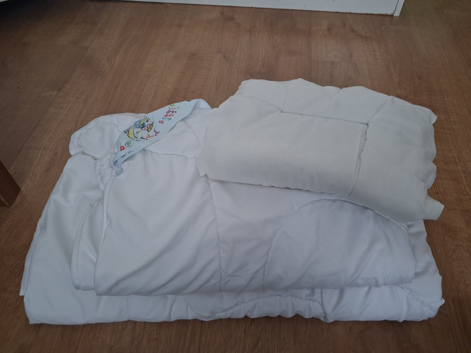Predam idealne vsetko spolu ako na fotke 2 x komlet postelne pradlo, 1x plachta rozmerovo na postielku 60x120 cm.