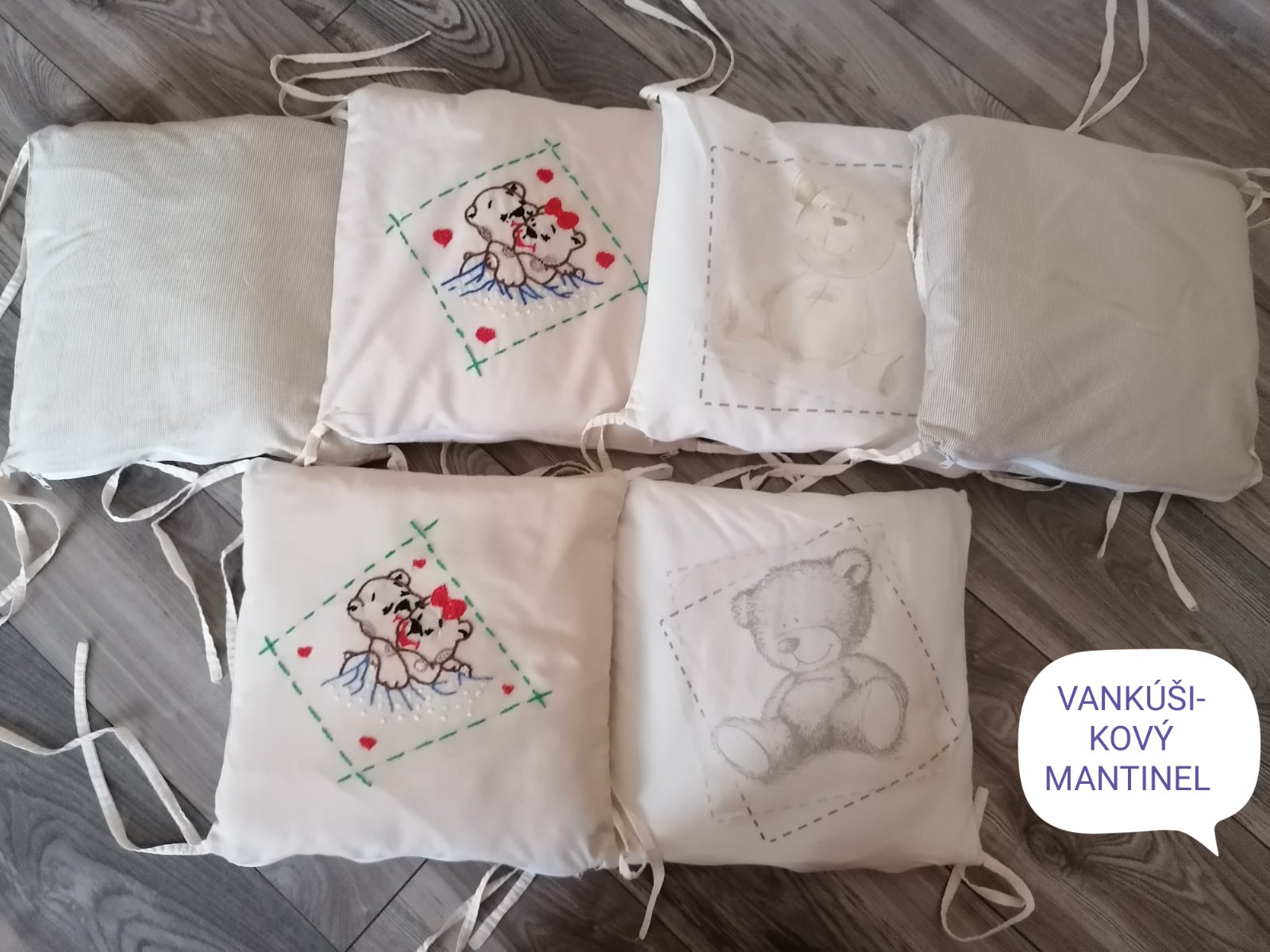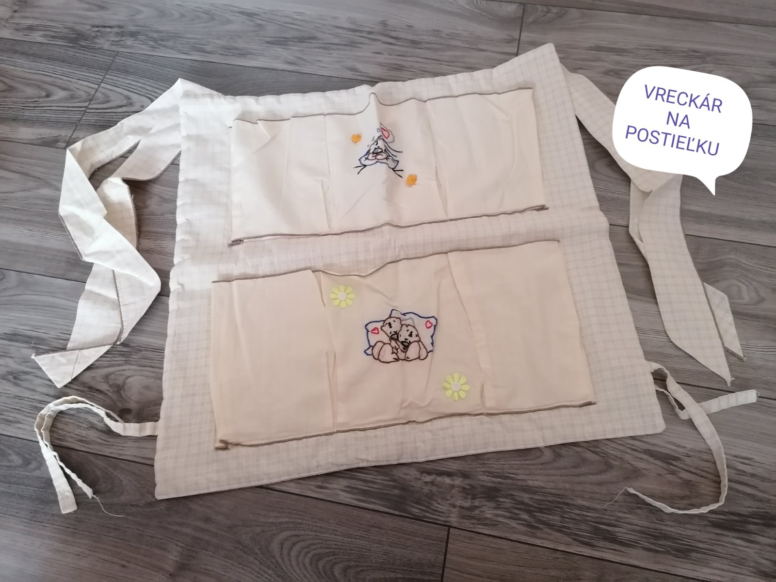 Balik do postieľky: Vankúšikový mantinel + vreckár. Všetko spolu 10€ KONTAKT: Silvia, Ružomberok mob. 0908 234 371.