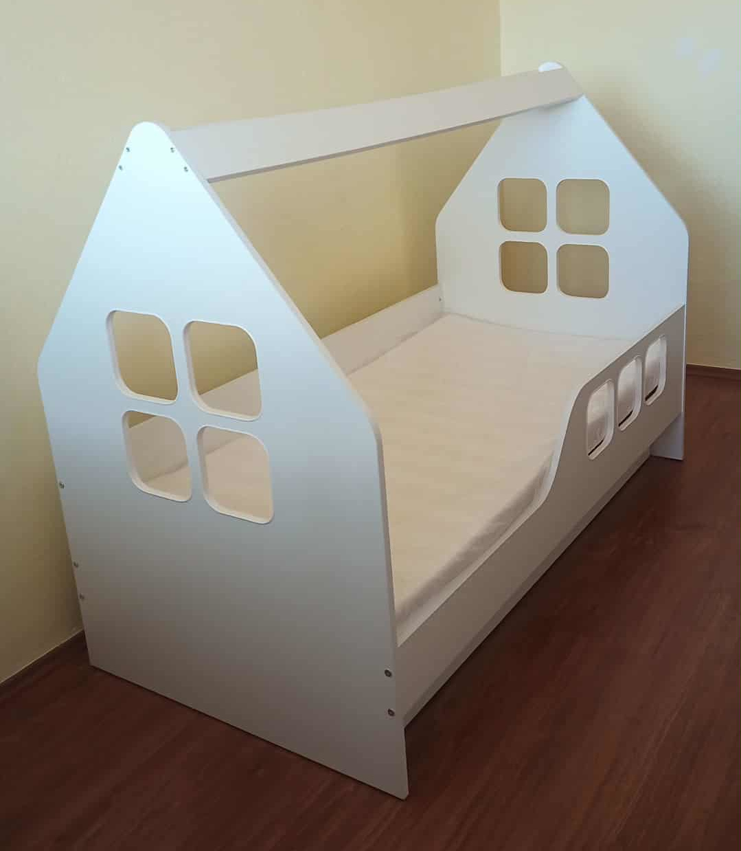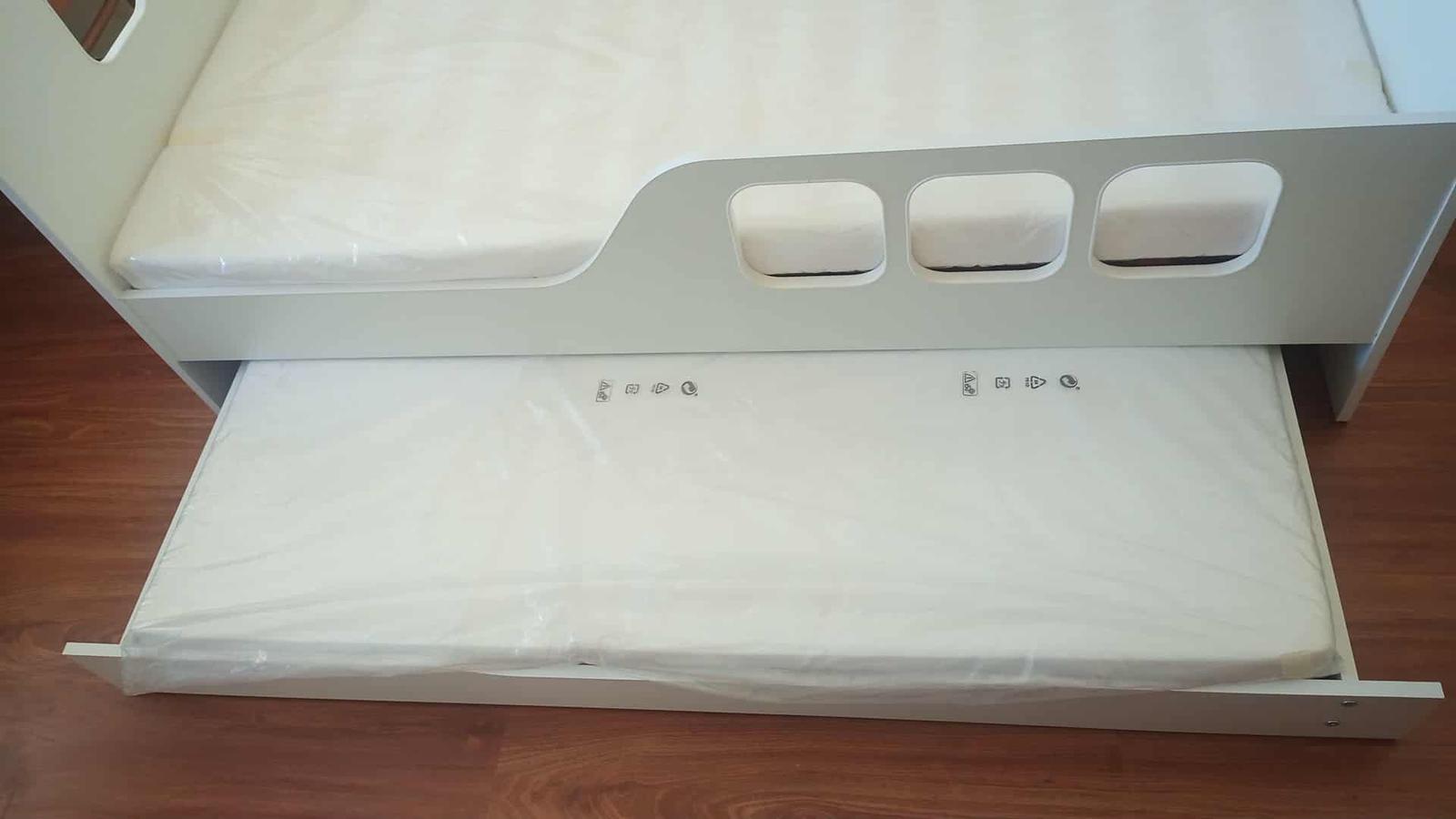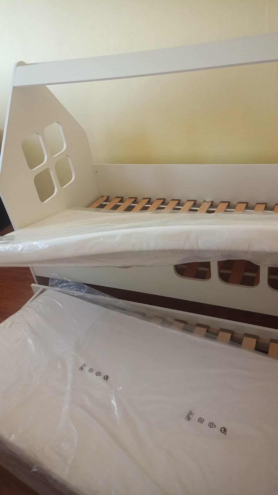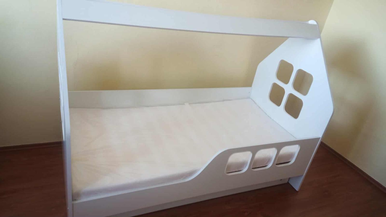 Predám krásnu detskú posteľ s prístelkou v tvare domčeka, rozmery 160x80 posteľ + rošt + matrac + zasúvateľná prístelka s roštom a matracom. Výborný stav, minimálne používaná. Dodám v demonte, prevoz si zabezpečí kupujúci. Cena 80,-€, odber Karlova Ves