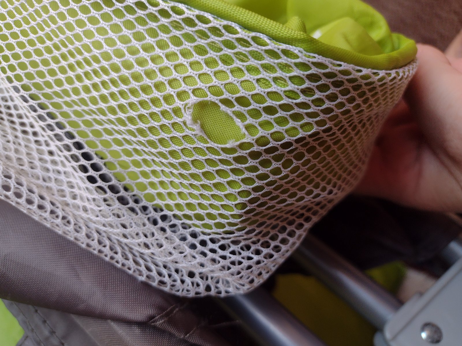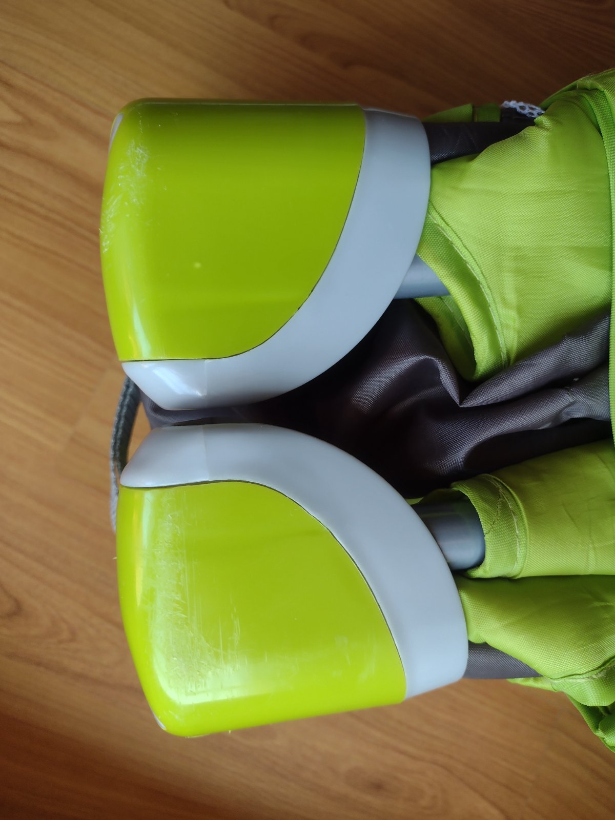 rozkladacia postiľka značky baby design, slabo zelené okraje, tmavšie zospodu,sieťka biela. My sme v nej mali klasický postieľkový matrac navyše (je na fotke + mám ho tiež v ponuke). Vnútro (spacia časť) má veľkosť cca 60x120 cm. Často používaná - má zopár malých dierok na sieti, a poškriabané plastové rohové časti, ktoré sa opierali o stenu. Funkčne je však komplet v poriadku. Skladá sa do "cestovnej tašky", ktorá je súčasťou. Zložená sa dá rolovať na kolieskach ako kufor. Na jednej úzkej strane má zospodu kolieska pre ľahšie manipulovanie zloženej alebo rozloženej postieľky, na druhej (užšej) strane sú zipsovacie dvierka.