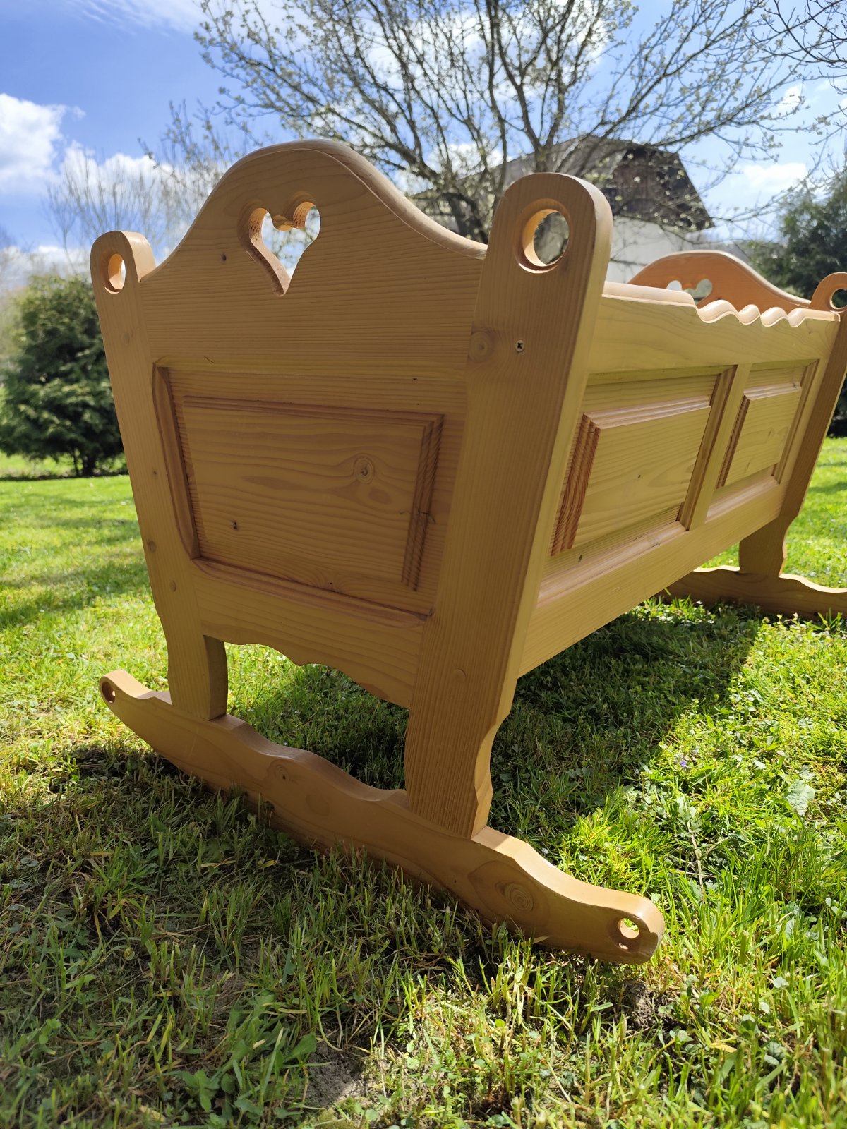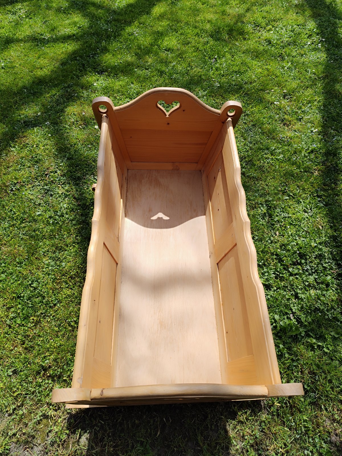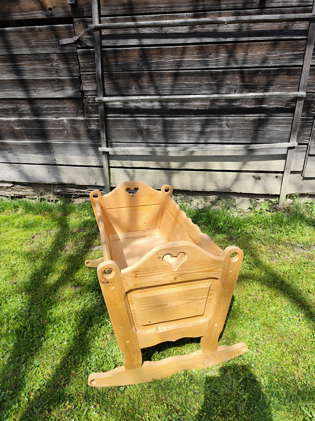 Kolìska robenà stolàrom s matracom,vnútorná šírka na spodu35×80cm-hore 43×93cm,sem tam znak používania,stabilna,nevŕzga,dobrý stav