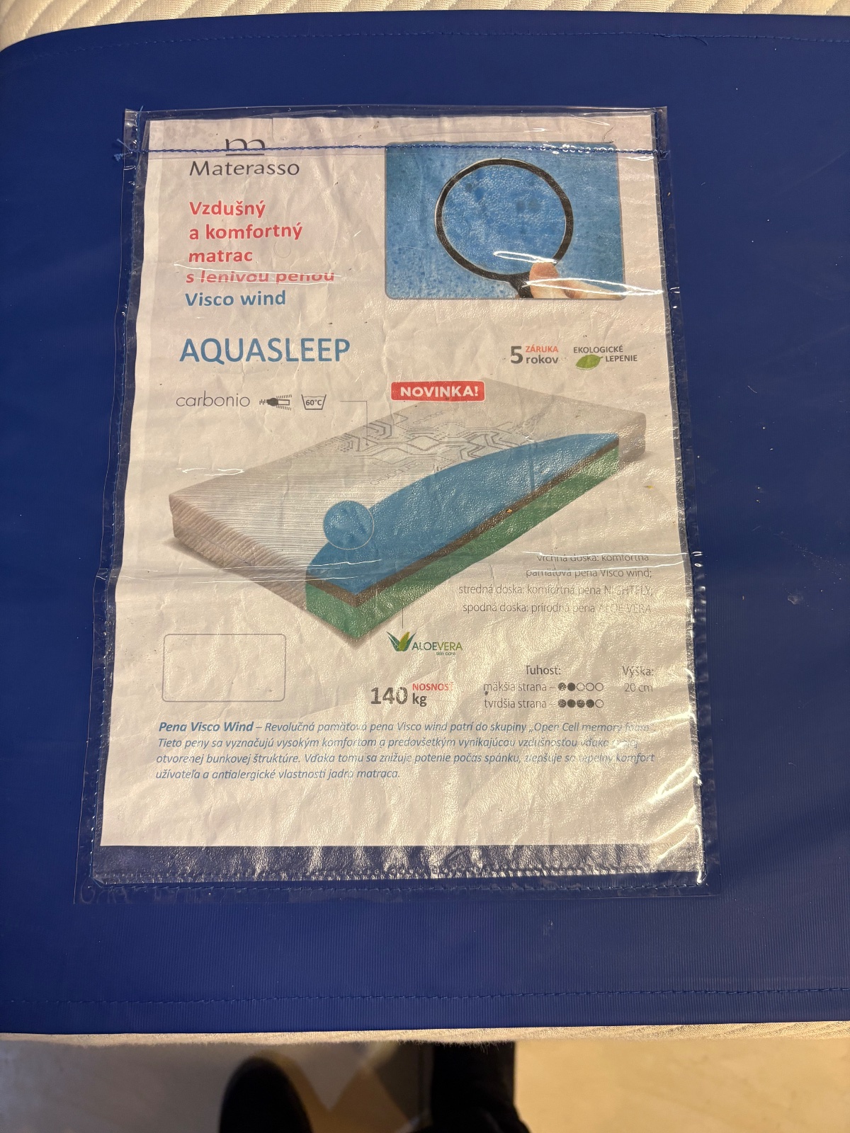 Matrac materasso Aquasleep. Kúpený 26.1.2026. Minymalne používaný z toperom. Predávam z dôvodu nevyhovujúcej tuhosti. Pôvodná cena 267,45€.