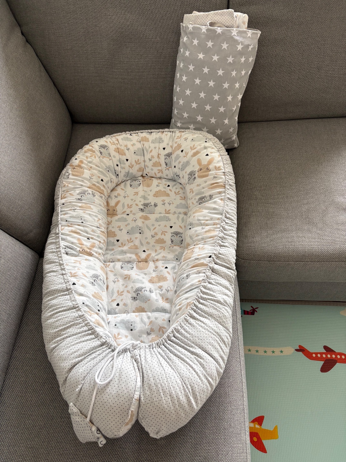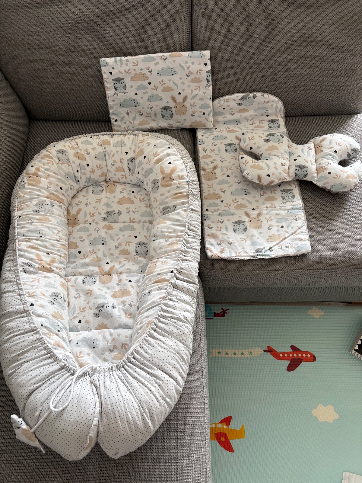 Určené pre deti vo veku cca od 0 - 9 mesiacov. Je veľmi variabilný. Šnúrkou je možné upravovať jeho veľkosť. Môžete ho viac stiahnuť alebo úplne uvoľniť. Sadu vankúšik (motýlik) s dekou môžete využívať aj do kočíka, kolísky, postieľky, zhruba do 2 rokov veku dieťaťa