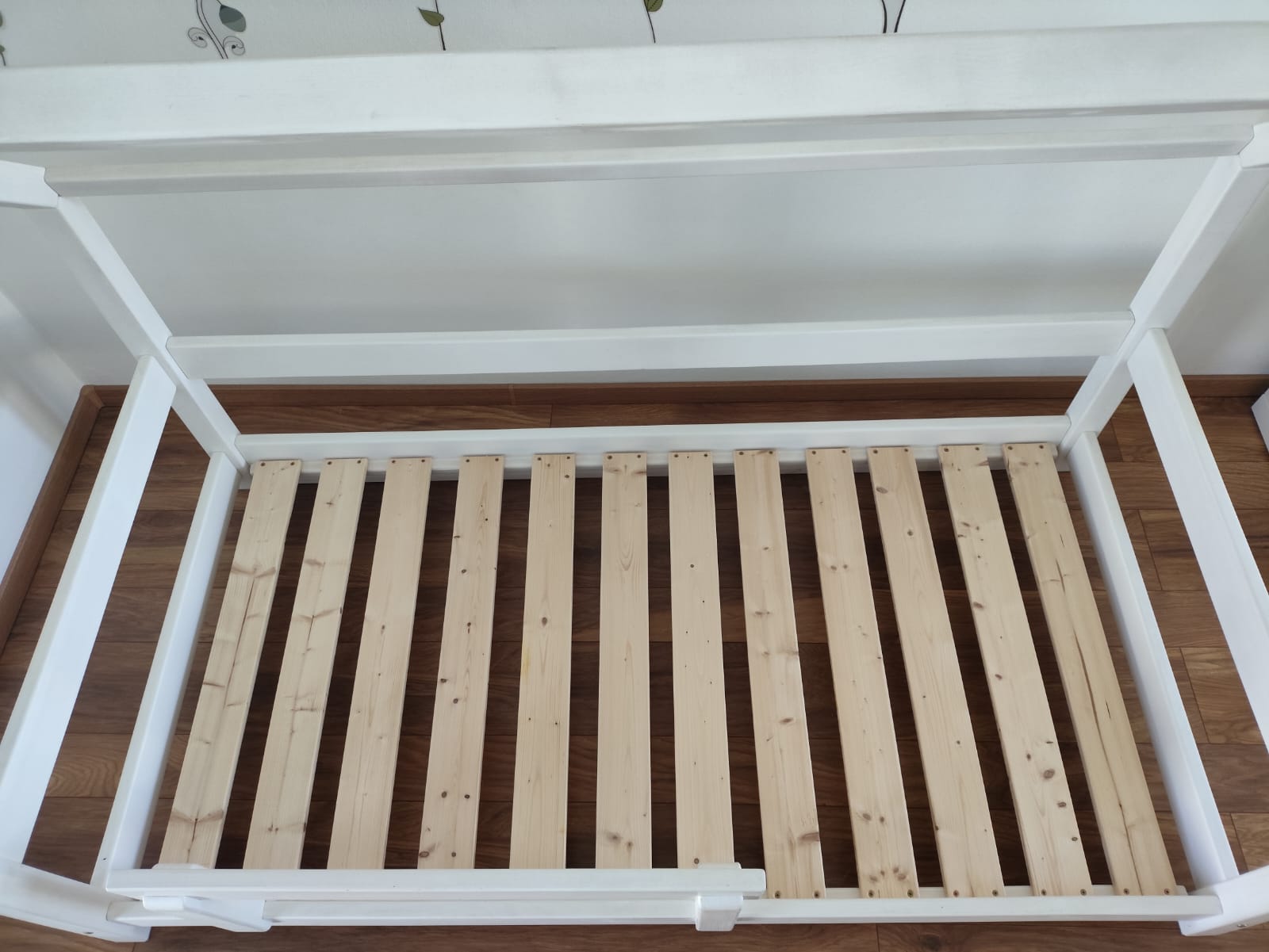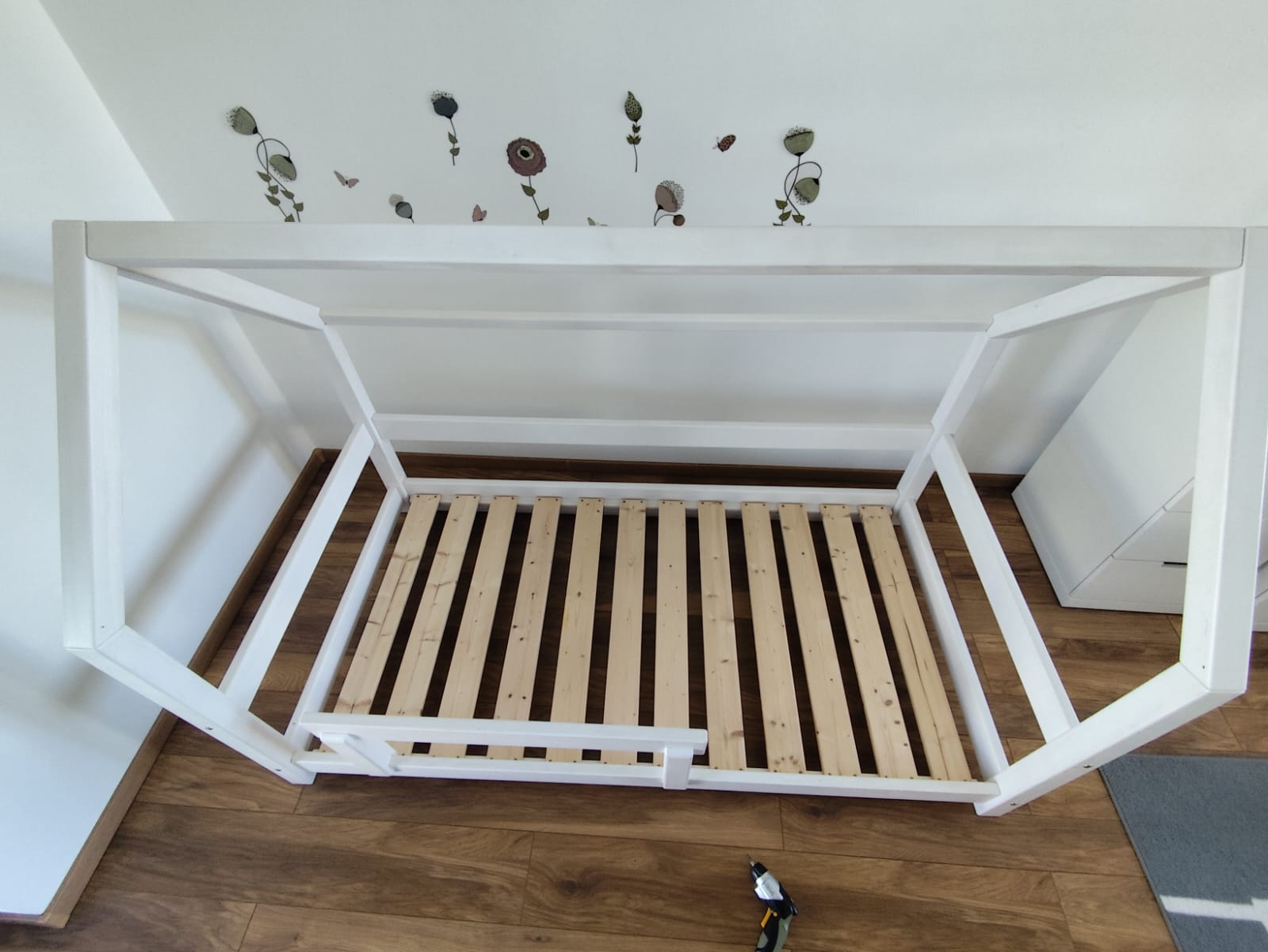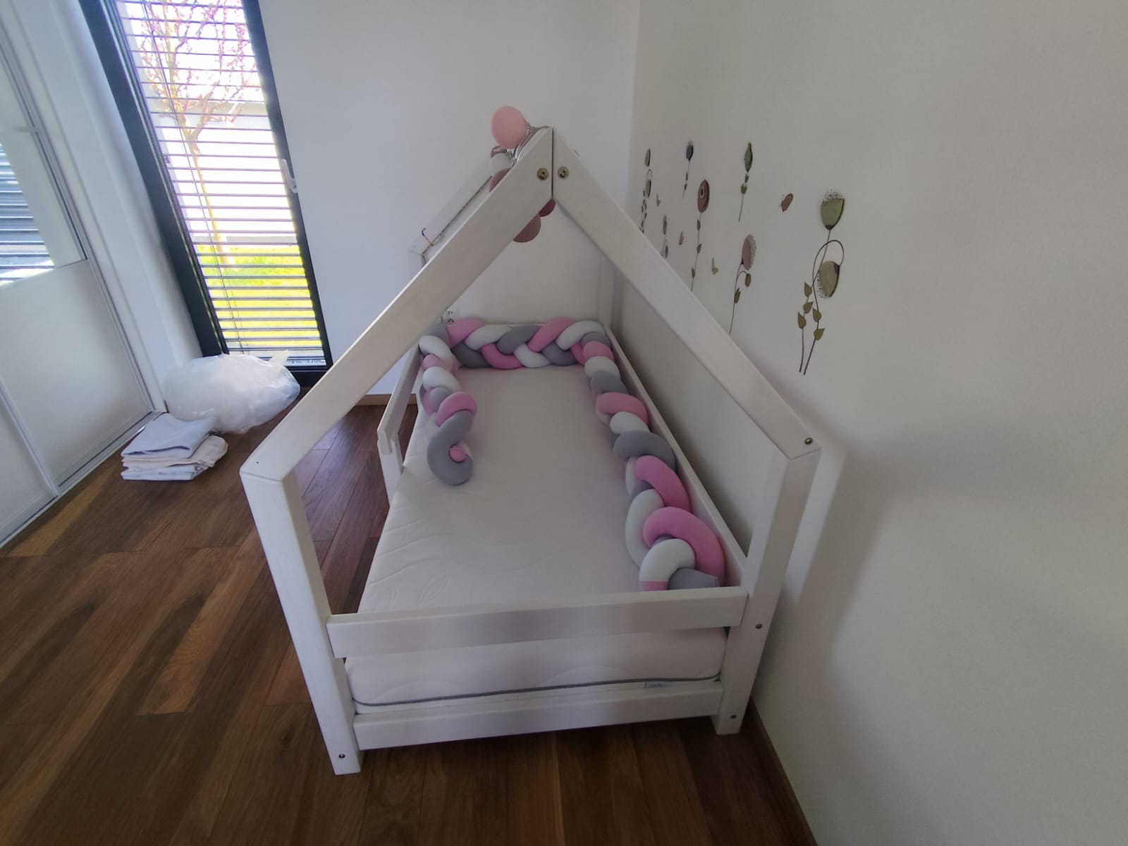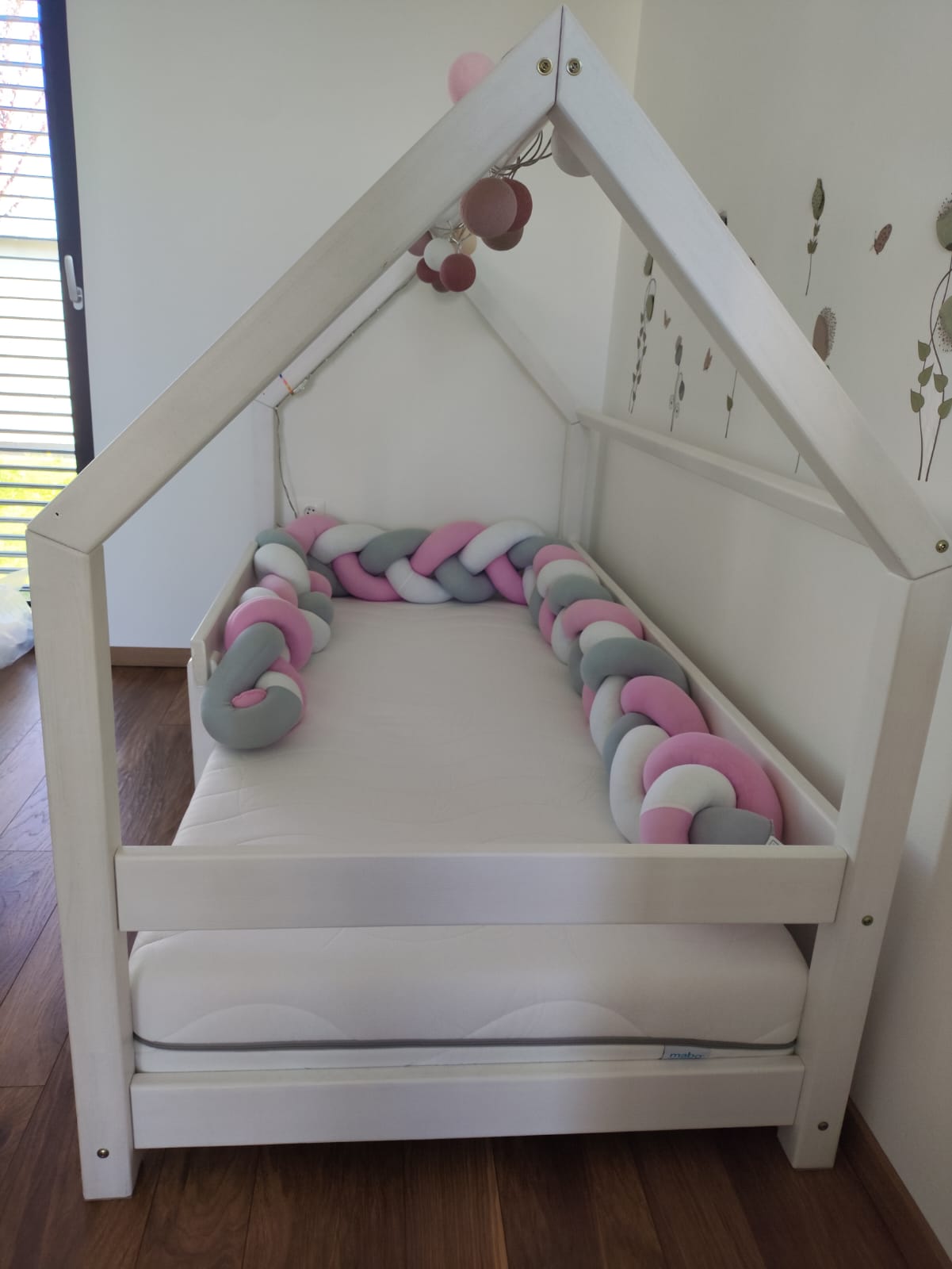 Predám detskú posteľ v tvare domčeka vo výbornom stave, prakticky nepoužívanú, pretože dieťa v nej nakoniec nespalo. Rozmery postele (vonkajšie) sú 189x98x134 cm (dĺžka x šírka x výška). Súčasťou je aj kvalitný matrac 180x90 cm so snímateľným poťahom, mäkčená bočnica a osvetlenie. Osobný odber v Bratislave, Čunovo. Kontaktujte ma iba so serióznym záujmom. Ďakujem.