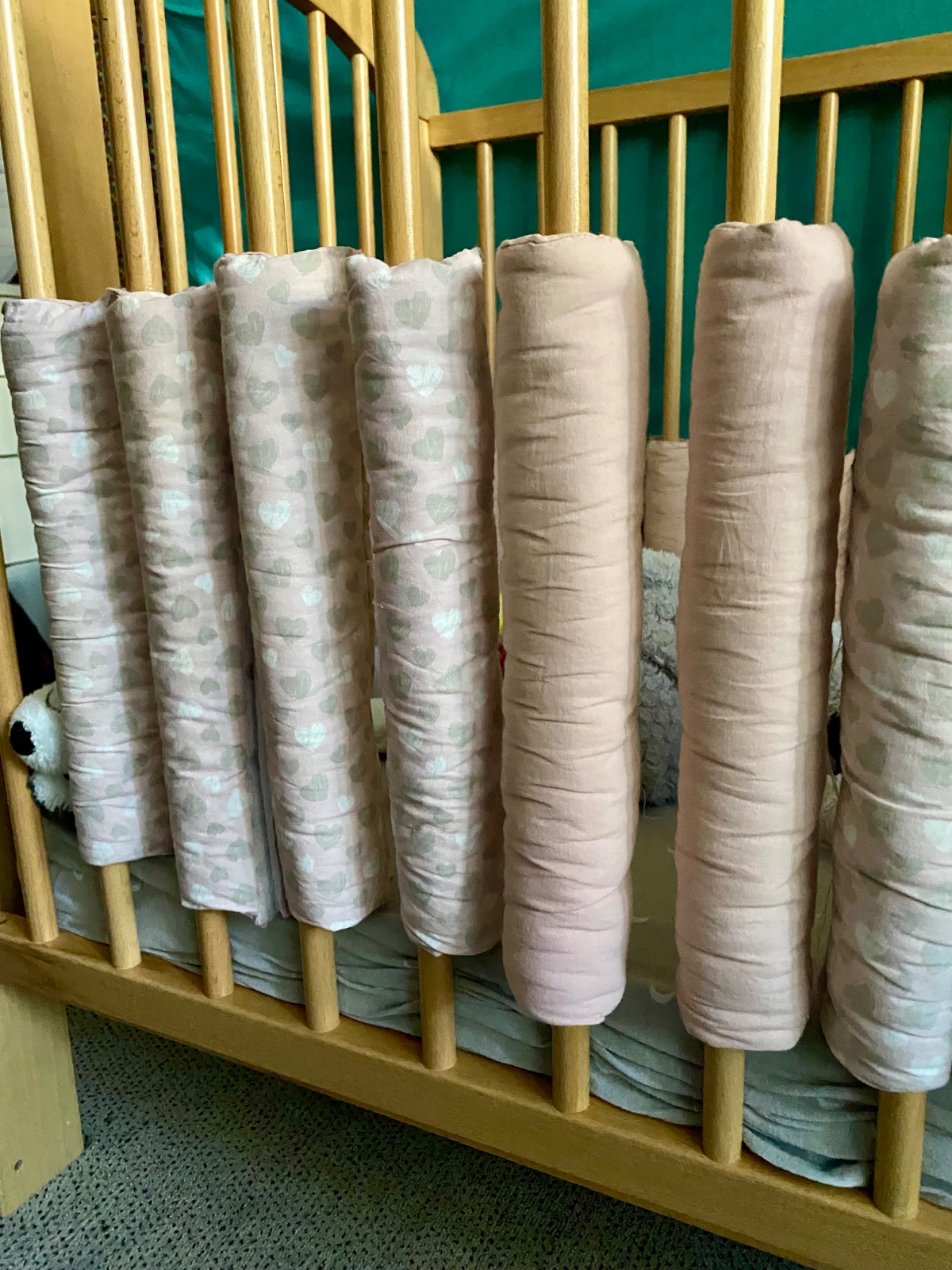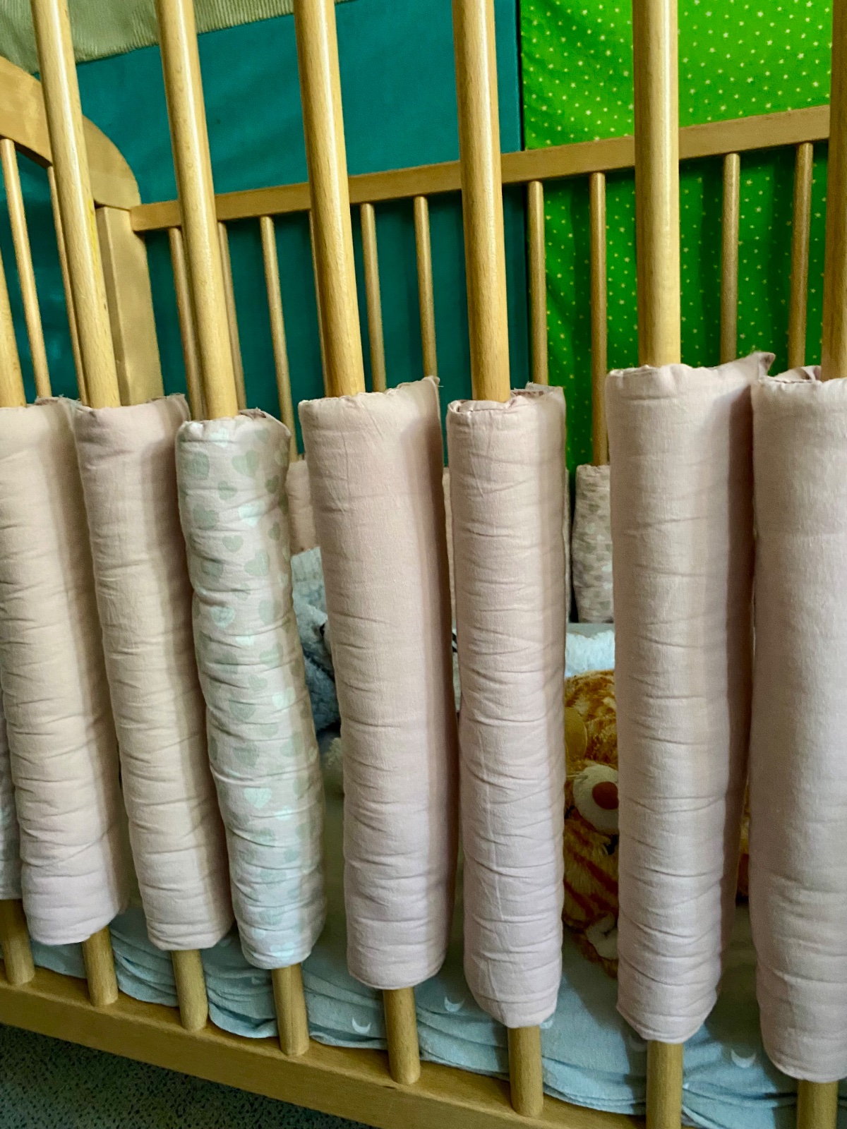 Predám na mieru šitý mantinel do postieľky - 44ks á 15x33cm. Lepí sa pomocou suchého zipsu na každú tyčku zvlášť (bezpečnosť bábätka proti uduseniu).Perie sa v práčke na 30C na jemnom programe. Používaný, bez poškodení.