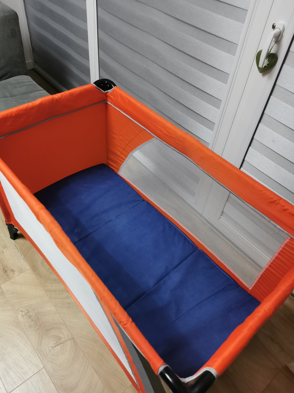 Možnost polohovania - zvýšenia dna, tým pádom je vhodná od narodenia. Prikladám aj cestovný molitánový matrac, pôvodná cena 20€. Čistý, nikdy nepremo...