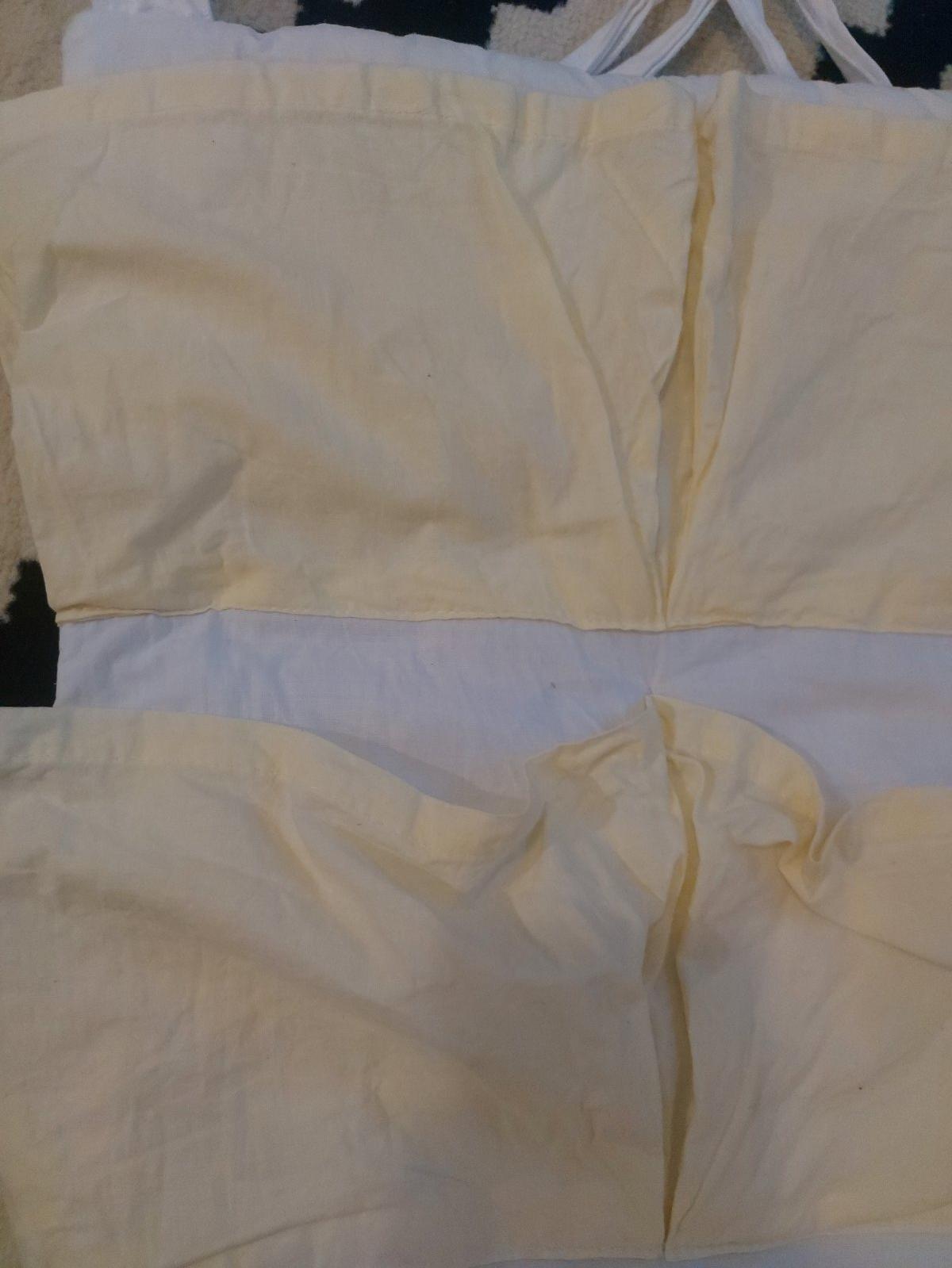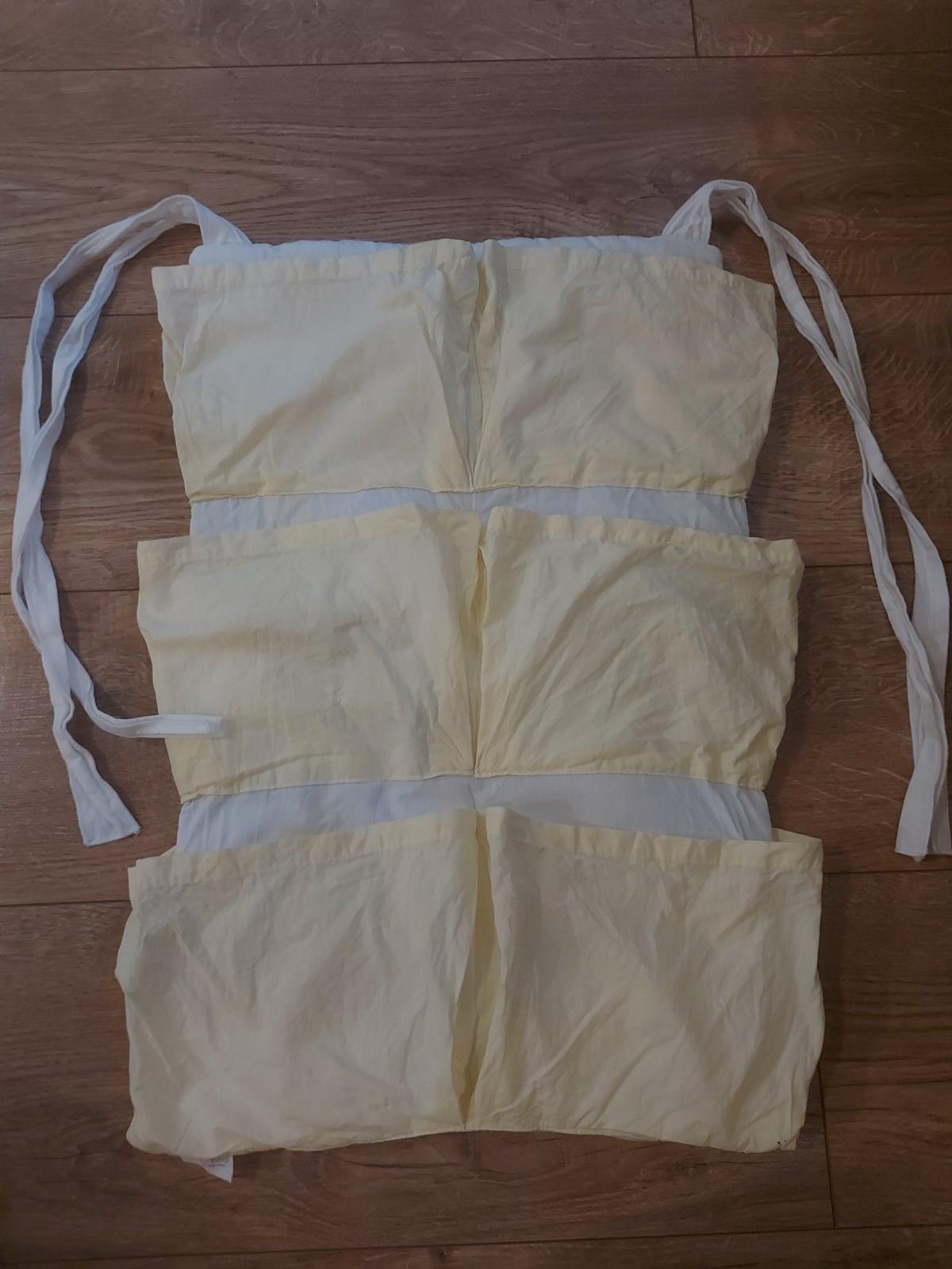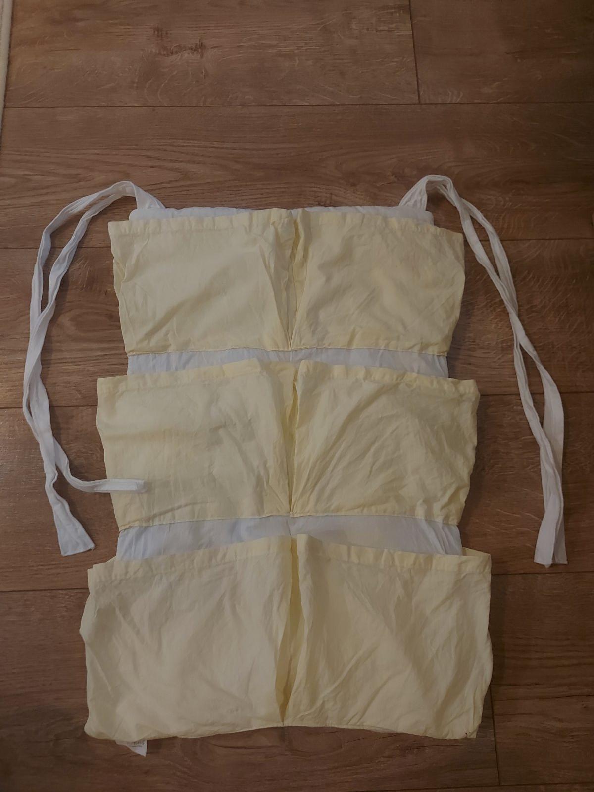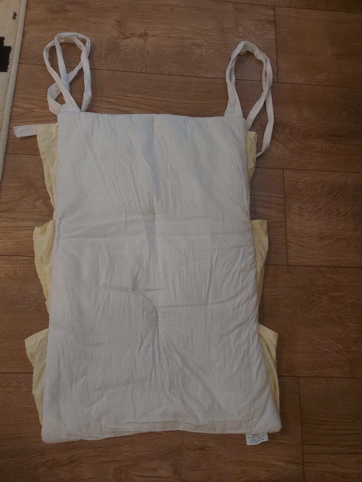 Super stav, len nie je vyzehleny (bol vyprany), velmi prakricky, mali sme ho zaveseny na postielke. Farba je svetlucka zlta.