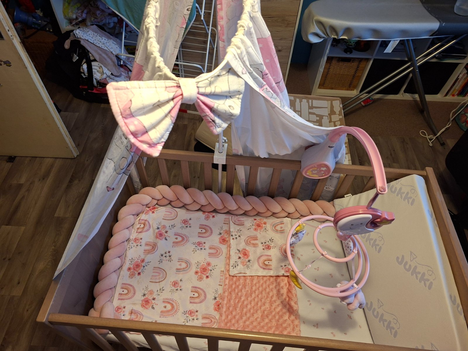 Predám detskú postielku IKEA SUNDVIK hnedej farby s prislusenstvom: matrac( kúpený cez feedo 05/2025, nepoužitý, nový)PETITE&MARS Matrac detský Coco Dream 120 x 60 x 8 cm
