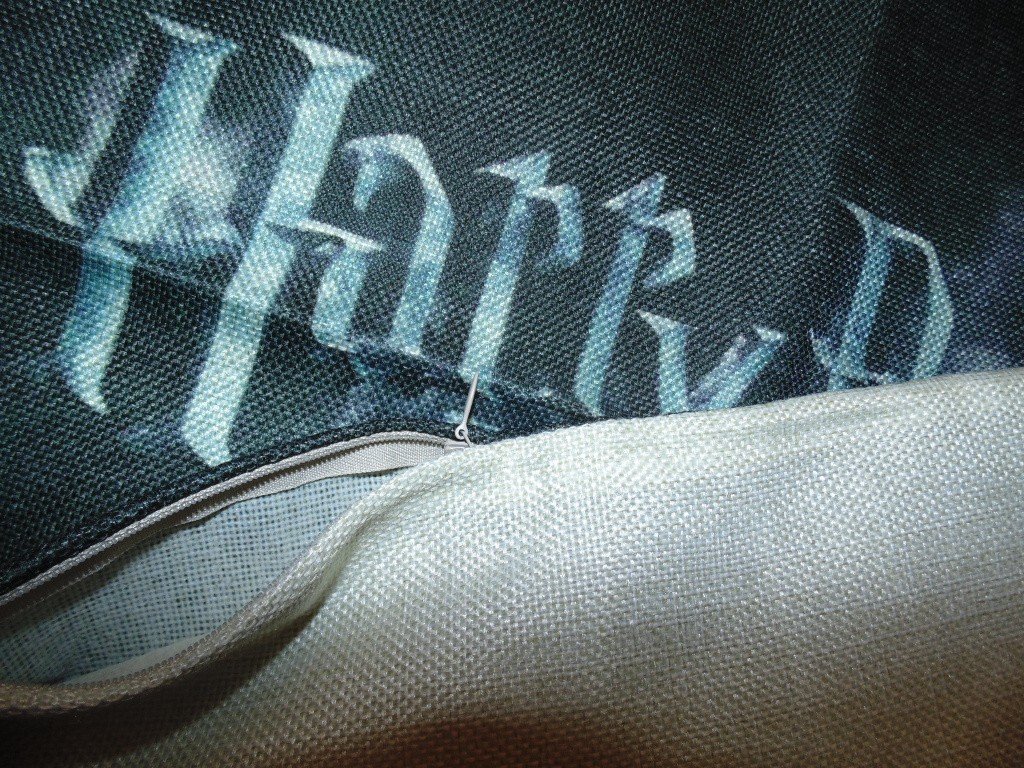 Z jednej strany je Harry Potter potlač a z druhej strany je bledobéžová.