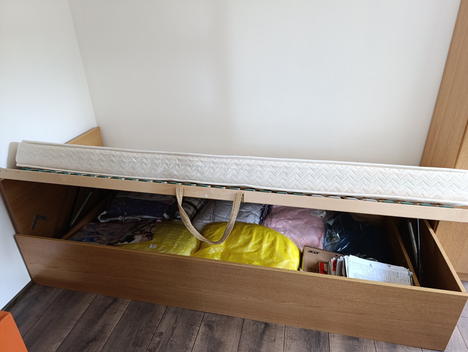 Predám posteľ s úložným priestorom. Vyklápanie je z boku. Farba by mala byť svetlý dub. Len osobný odvoz.