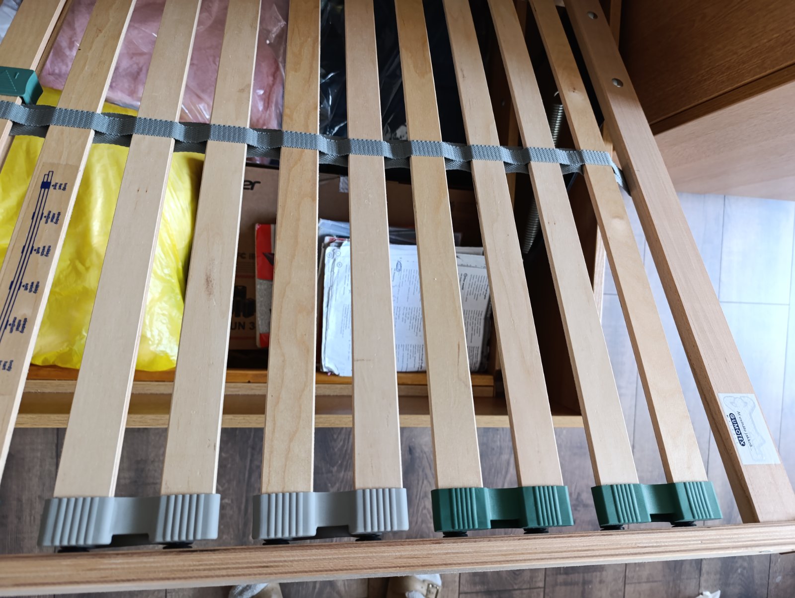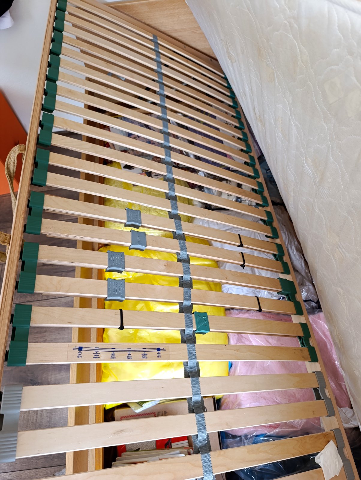 Ani nie 2 roky pouzivana, kvalitna masivna, jednoduche zlozenie. Synovi sme kupili tu istu ale sirsiu. Vratane penoveho matraca Tempo Kondela. Osobny odber Trnava.