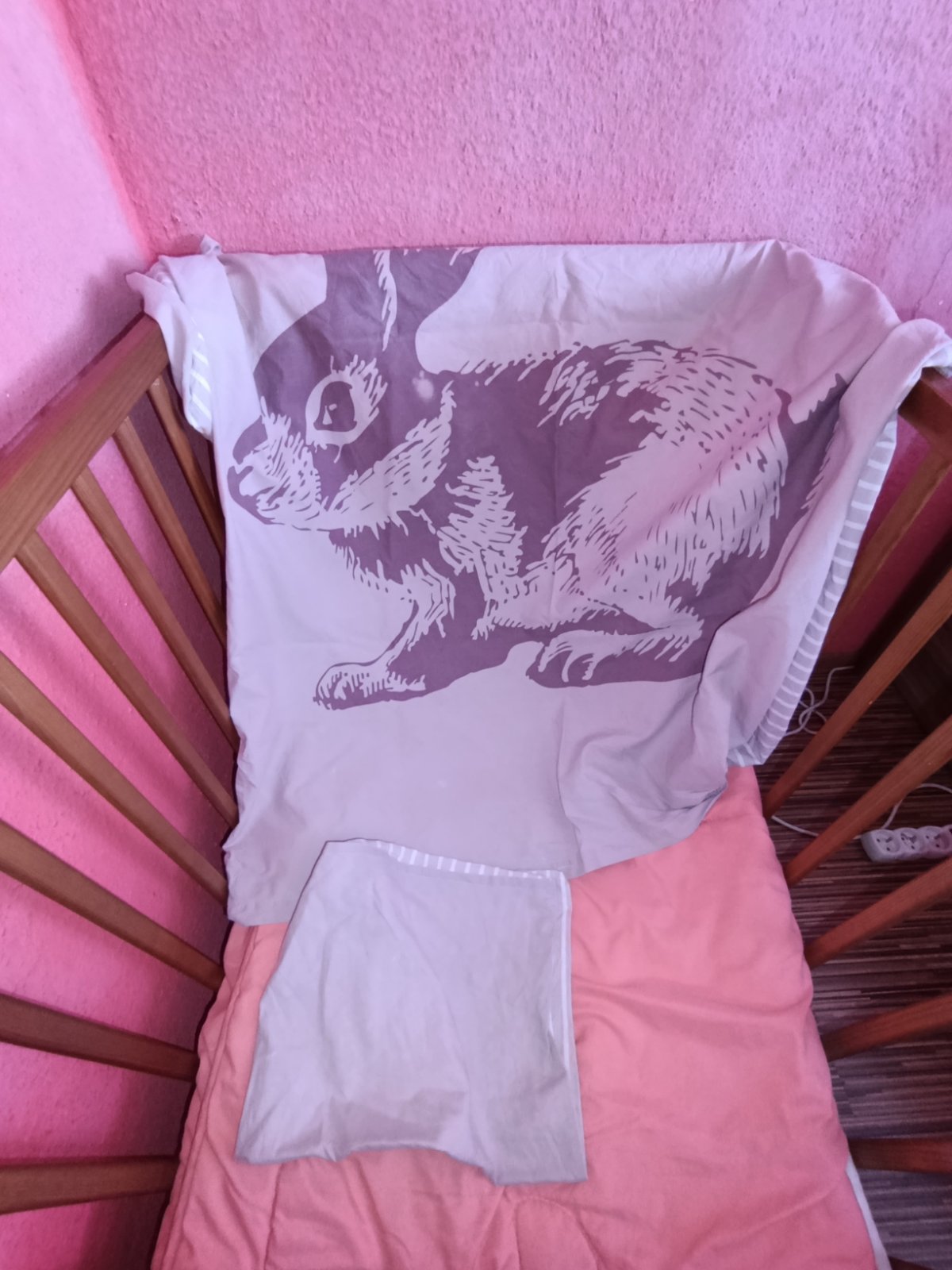 Zajacikove oblecenie ma aj napinavou plachtu, na zajacikovi je mala skvrna(ako od sava-take som uz kupila v lidli)