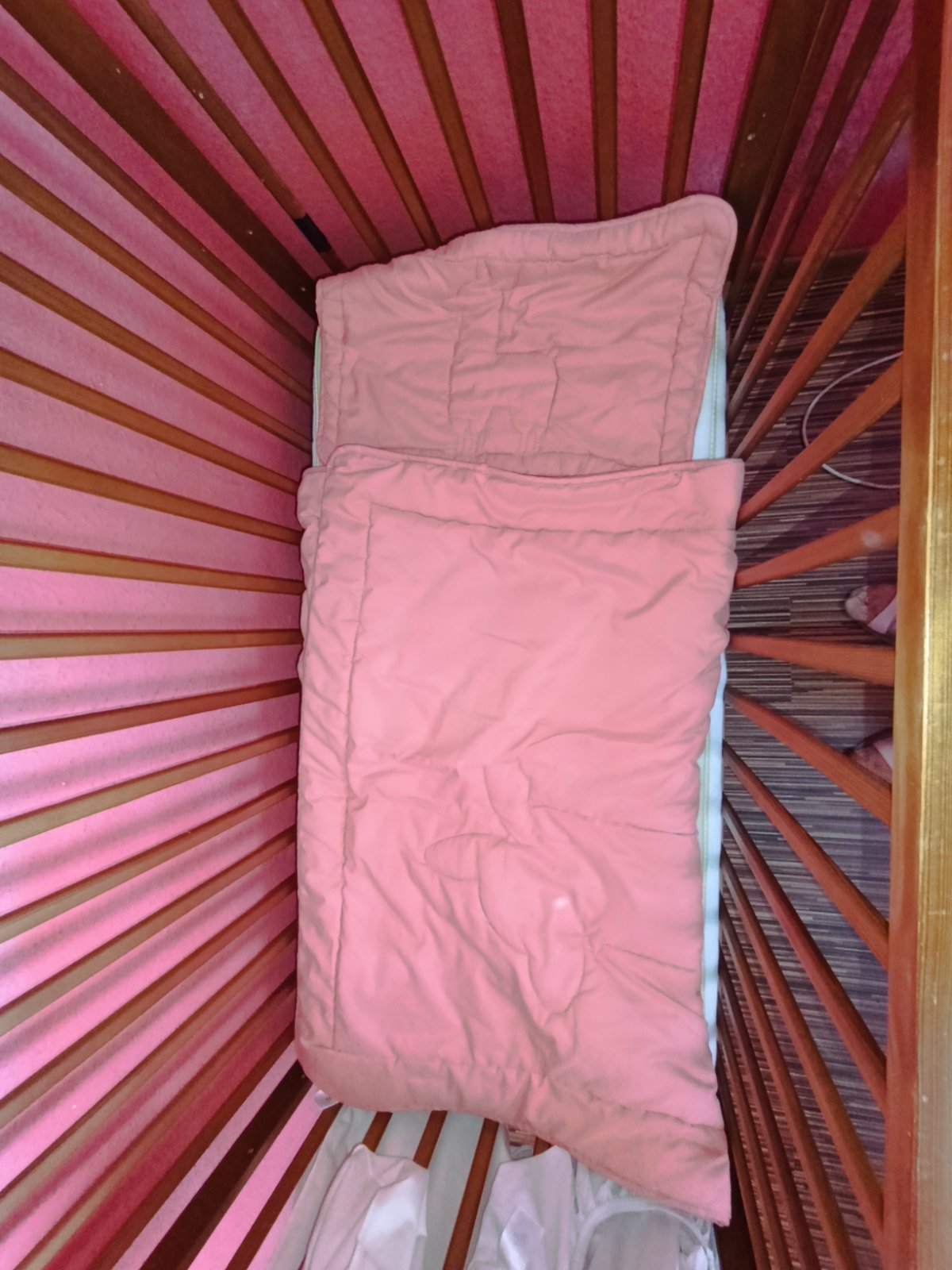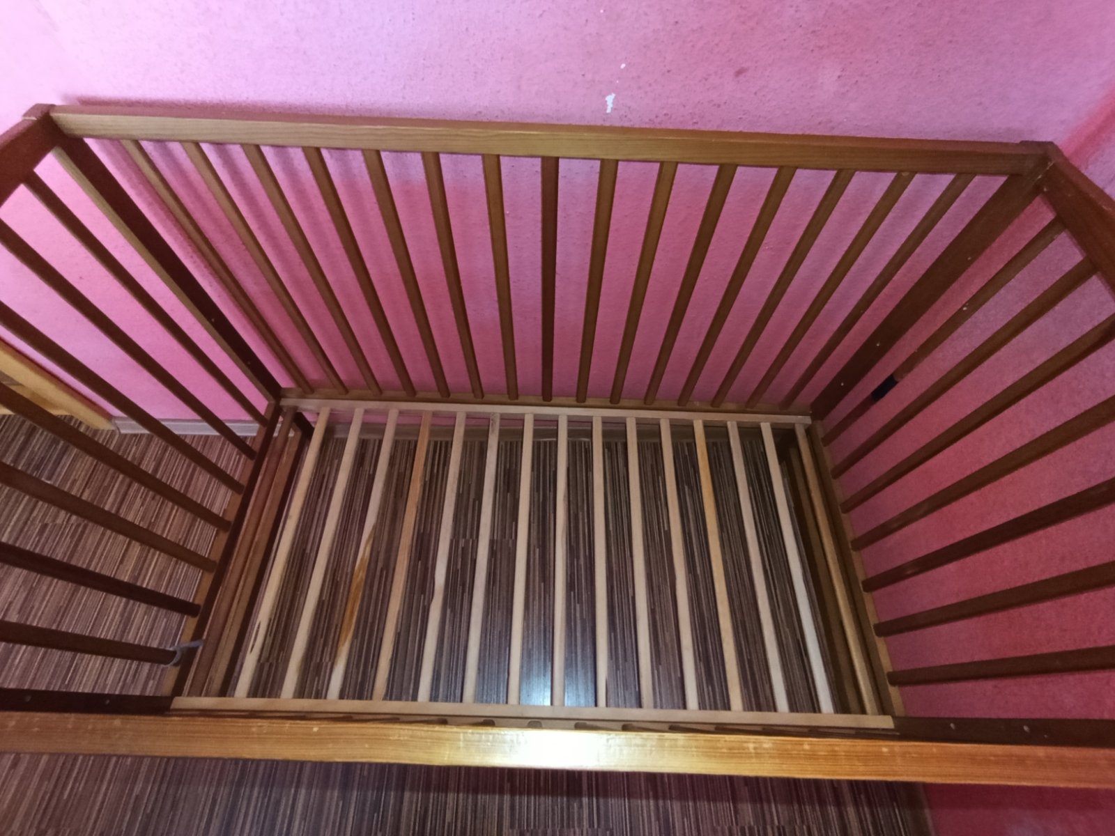 Da sa polohovat do troch vysok. Vyberaju sa tei lamely pre vacsie dieta aby mohlo same chodit dnu/von z postielky. Jedna lamela je zlomena a zalepena. Po dvoch detoch,miestami okusana a osuchana. Treba si ju natriet.