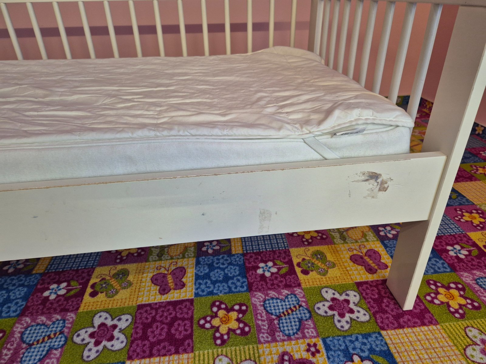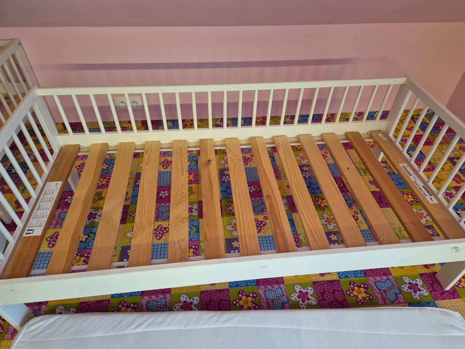 Predám používanú detskú posteľ v zachovalom stave. Posteľ predávam s roštom, bez matraca.