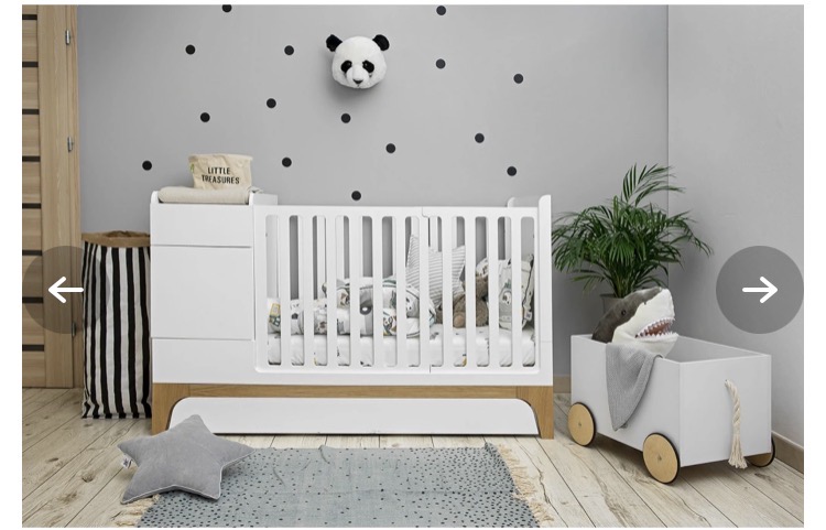 Postieľka rastie spolu s dieťaťom – má 3 výškové úrovne matraca (29 / 47,8 / 60,5 cm od podlahy), odnímateľnú časť predného rámu a možnosť prestavby na detskú posteľ. Po demontáži bočných rámov vznikne posteľ s dĺžkou 160 cm a zo zvyšných častí je možné vytvoriť pracovný stôl. Skrinku s prebaľovacím pultom je možné namontovať na pravú alebo ľavú stranu.