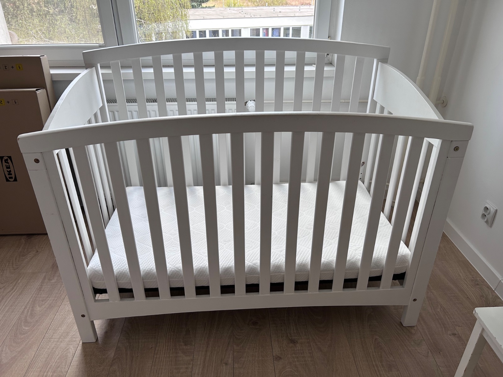 Drevená postieľka s matracom v cene. Vhodná pre väčšie dieťatko - má len 1 polohu. Bude rozmontovaná, ľahko ju preveziete. Osobný odber Košice - Terasa.