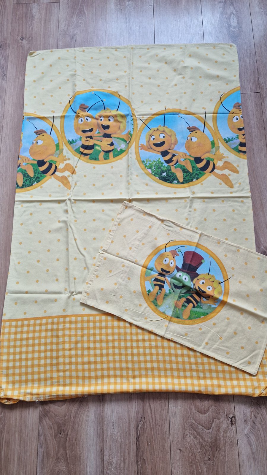 Detské obliečky, včielka Maja, 100%bavlna, Skutočné rozmery sú 90x128 a vankúš 40x58. Neboli vôbec použité.