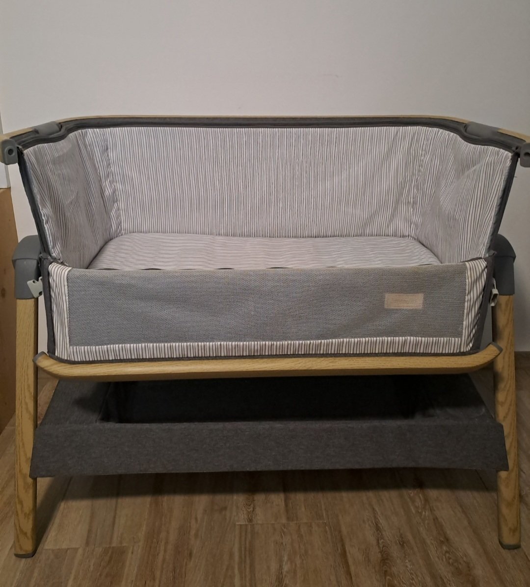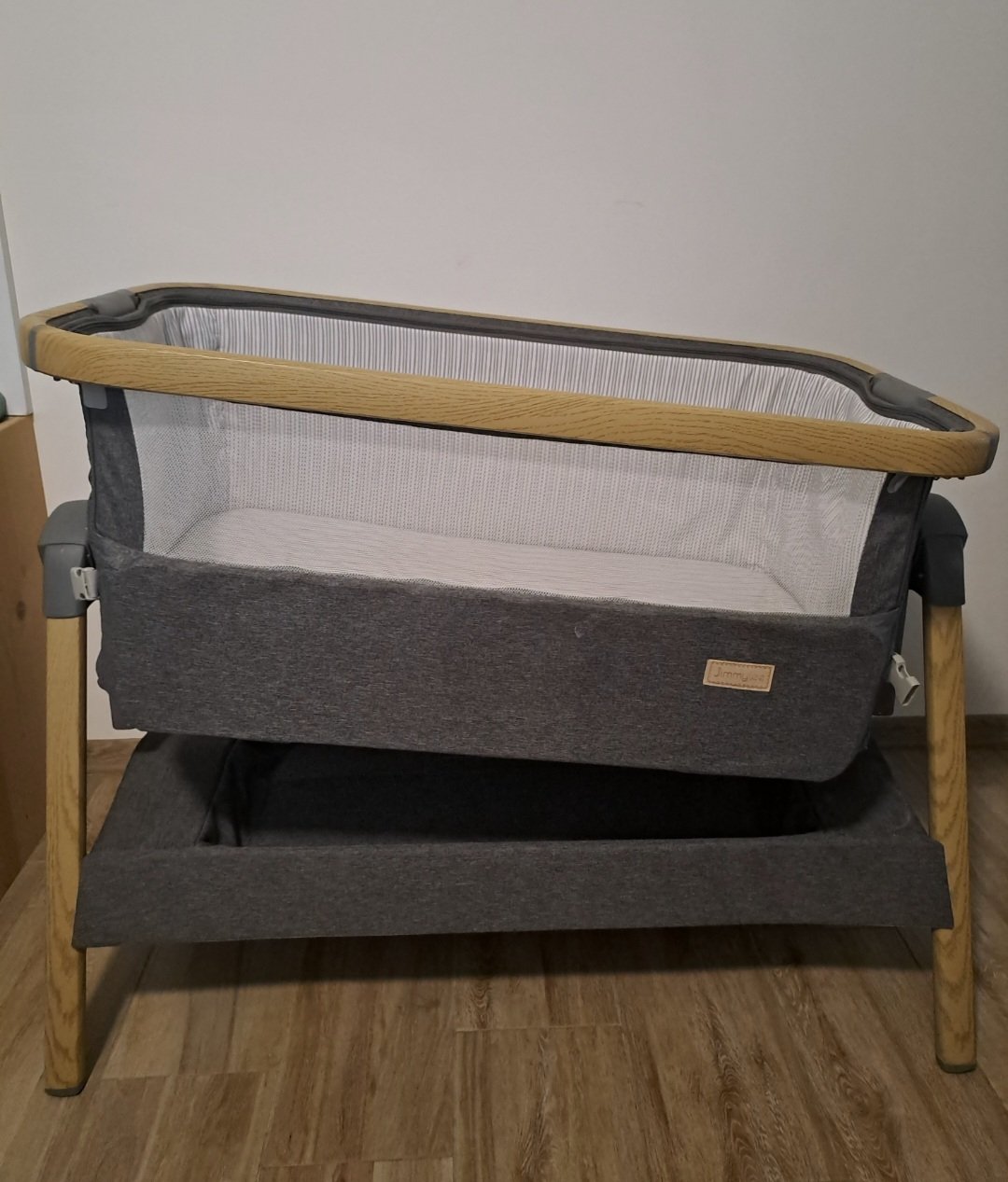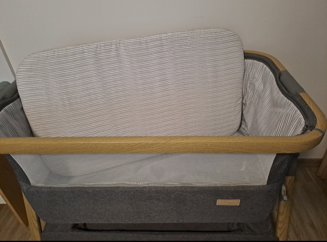 Predám postieľku zn JimmyLee. Postieľka sa na výškovo nastaviť, 7stupňov výšky + môže sa dať nastaviť pod uhlom (super proti refluxu). Bočnica sa da odopnút - vid foto. Popruh na upevnenie k manželskej posteli a fusak na prenos.