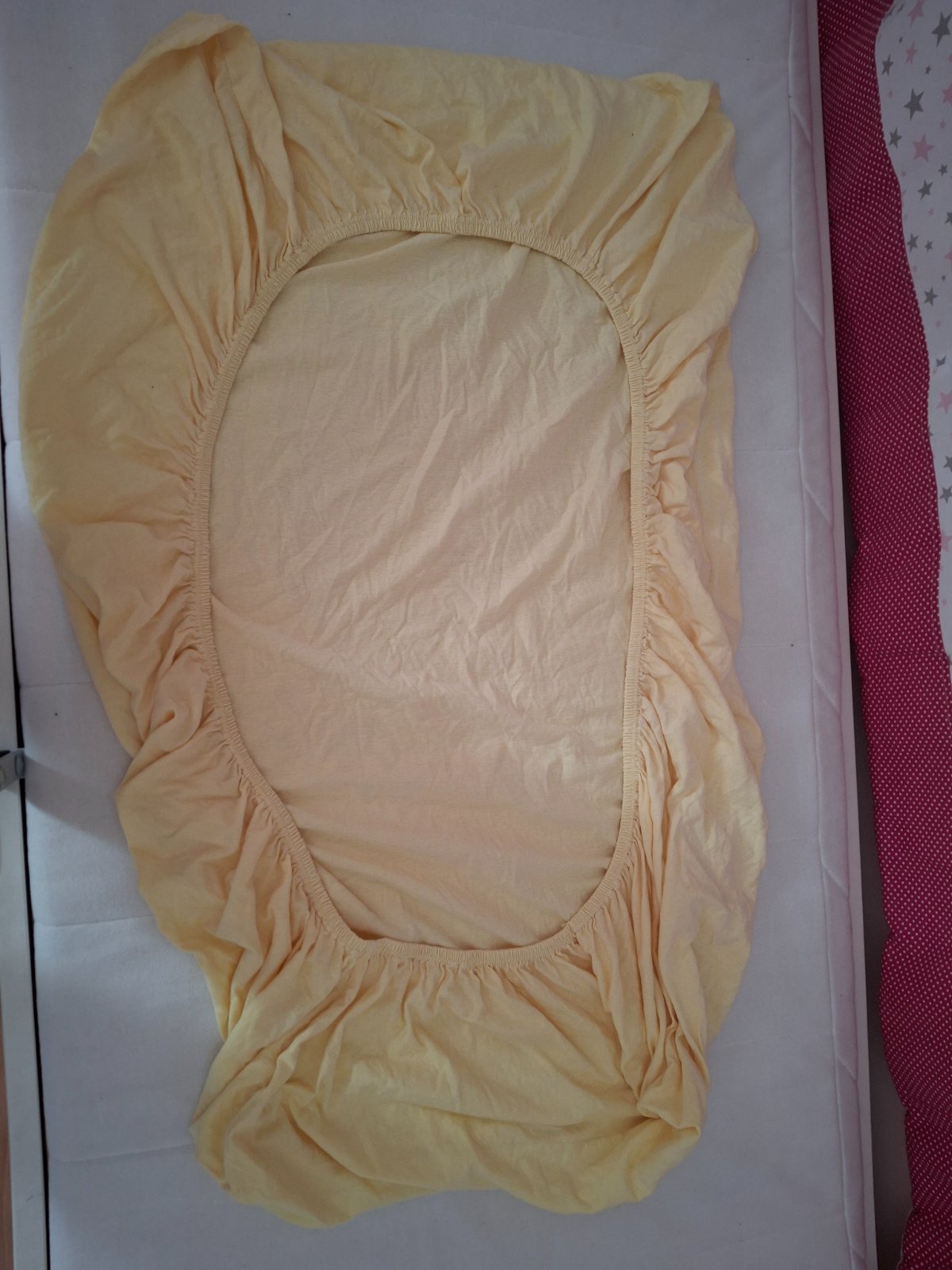Predám bavlnenú svetložltú plachtu s gumičkou do detskej postieľky pre bábätko. (FOTO 1 + 2.) Bez poškodenia či fľakov, pár žmolkov.