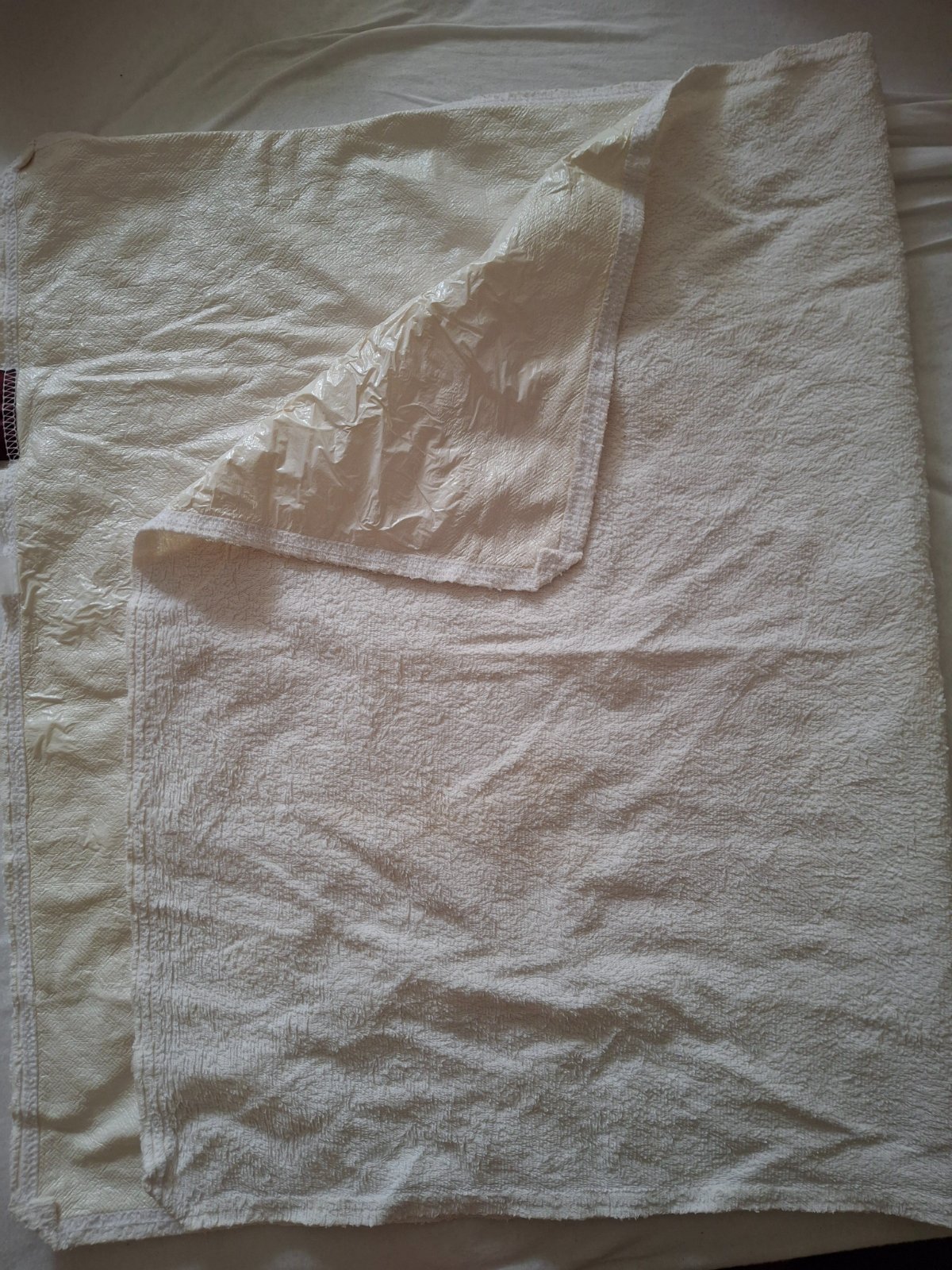 Grátis k tomu darujem bielu nepremokavú plachtu/podložku zn. TEPLO DOMOVA s rozmermi 88 cm x 57 cm. (FOTO 3).