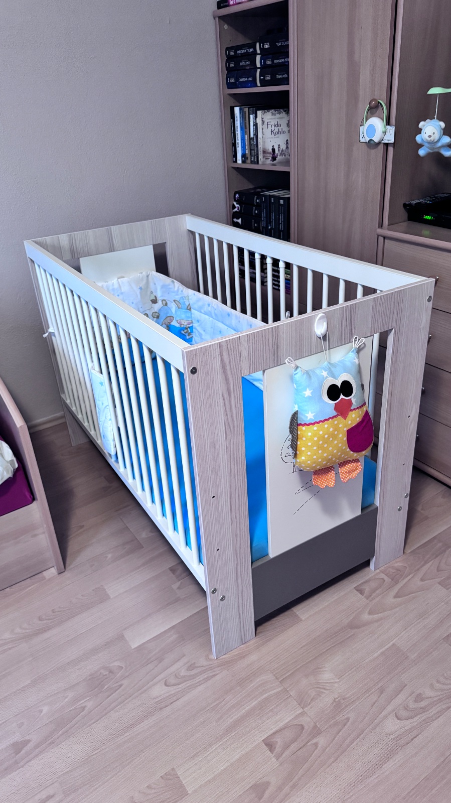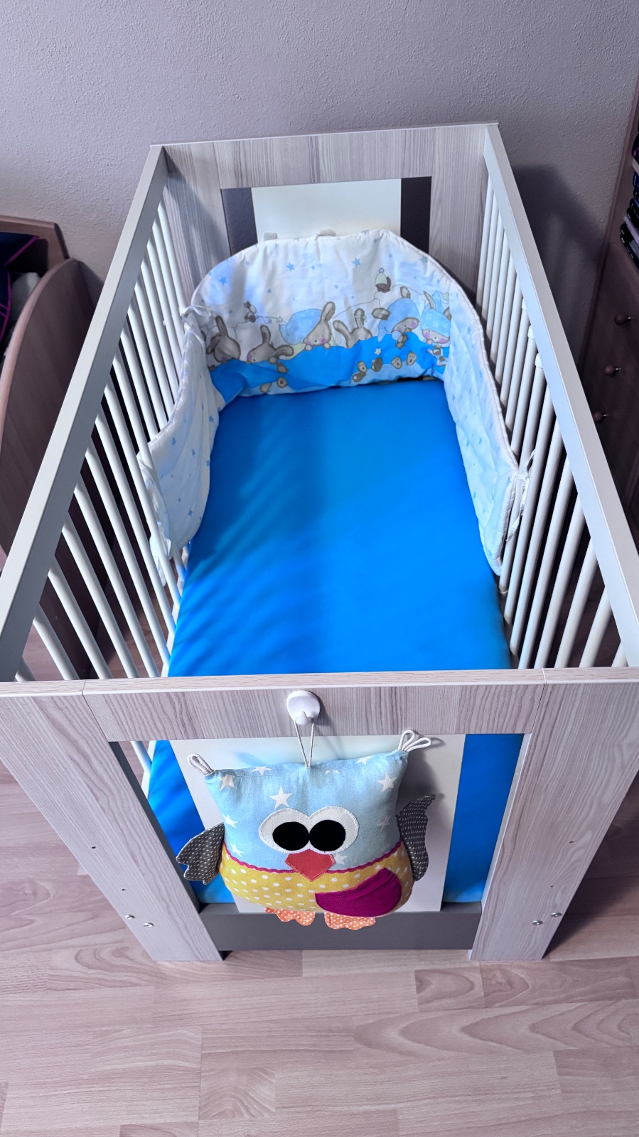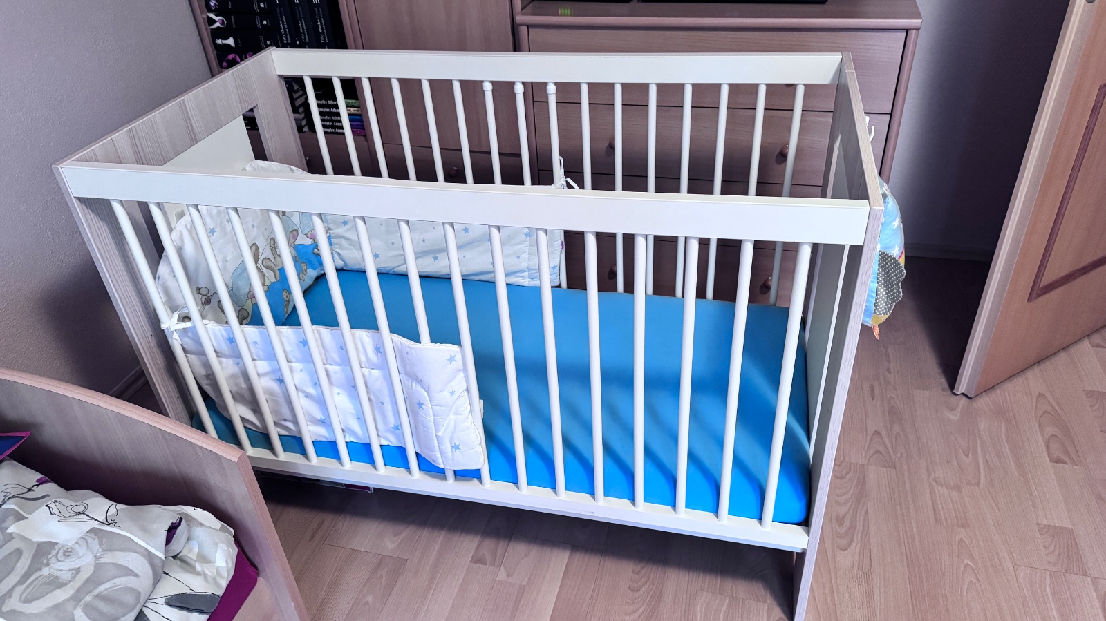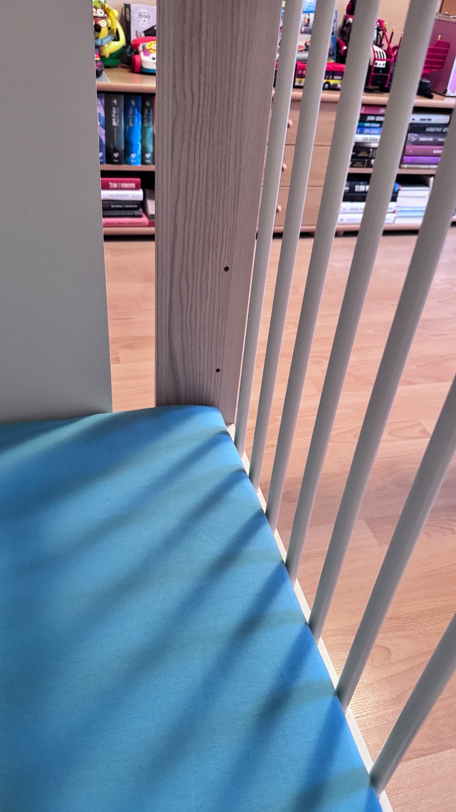 Vyborny stav - postielka bola pouzivana len u starych rodicov. Matrac mozne nastavit v troch polohach. Cena aj s matracom a mantinelom.