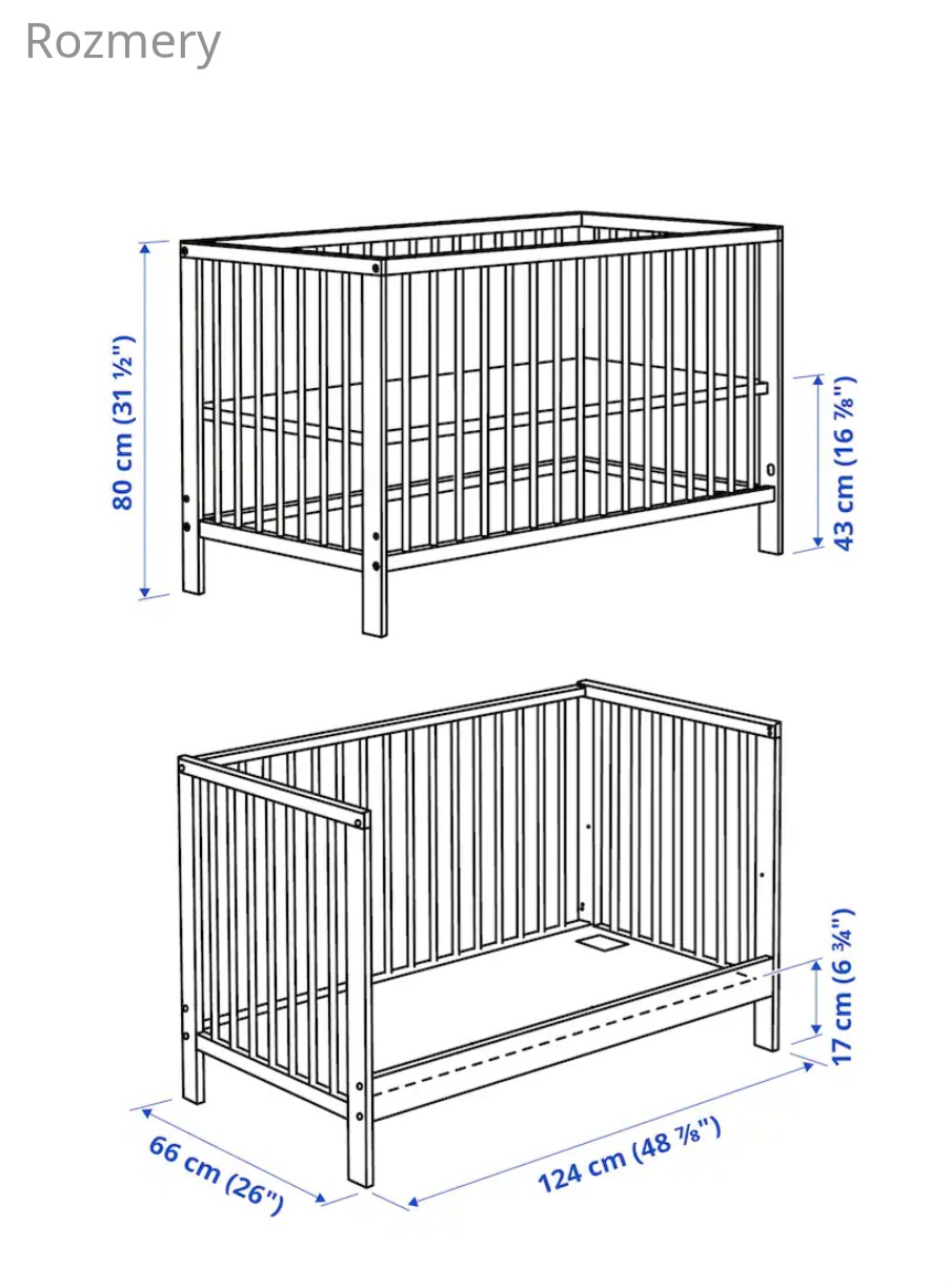 Predám detskú postieľku zn. IKEA Gulliver, nastaviteľná výška, 1 strana sa dá odobrať, TOP stav + matrac IKEA 120x60x8 cm, tiež TOP stav.