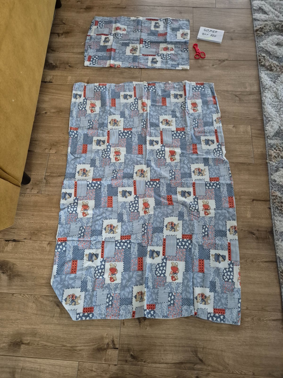 Obliečky len 2x vypraté, používané v škôlke asi mesiac, potom predškolákom zrušili poobednajšie spinkanie takže pekný stav :) Vankúš: 60x43 Paplón: 120x84