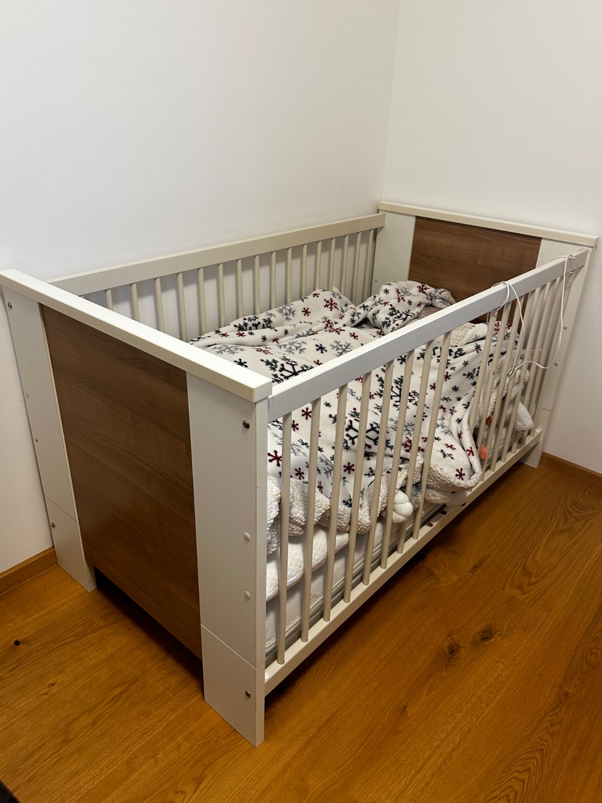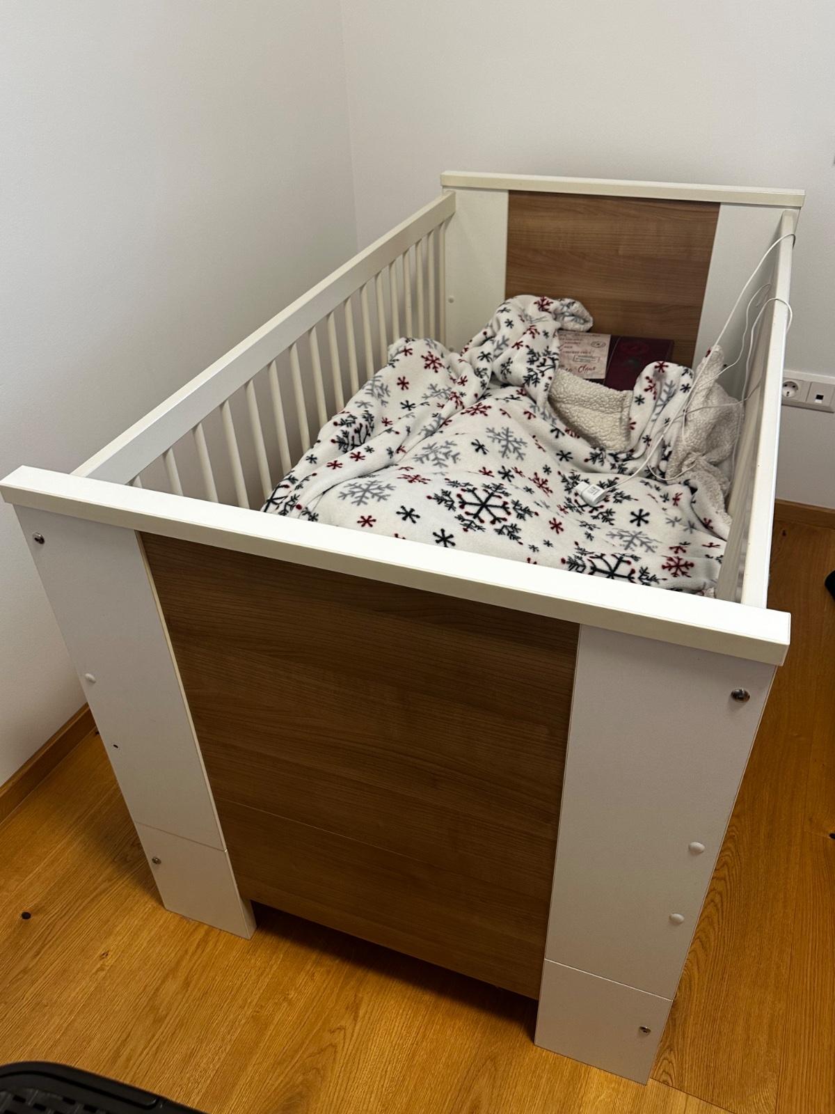 Je to rastupa postielka da sa zmenit na malu postel, pouzitelna do 6 rokov.