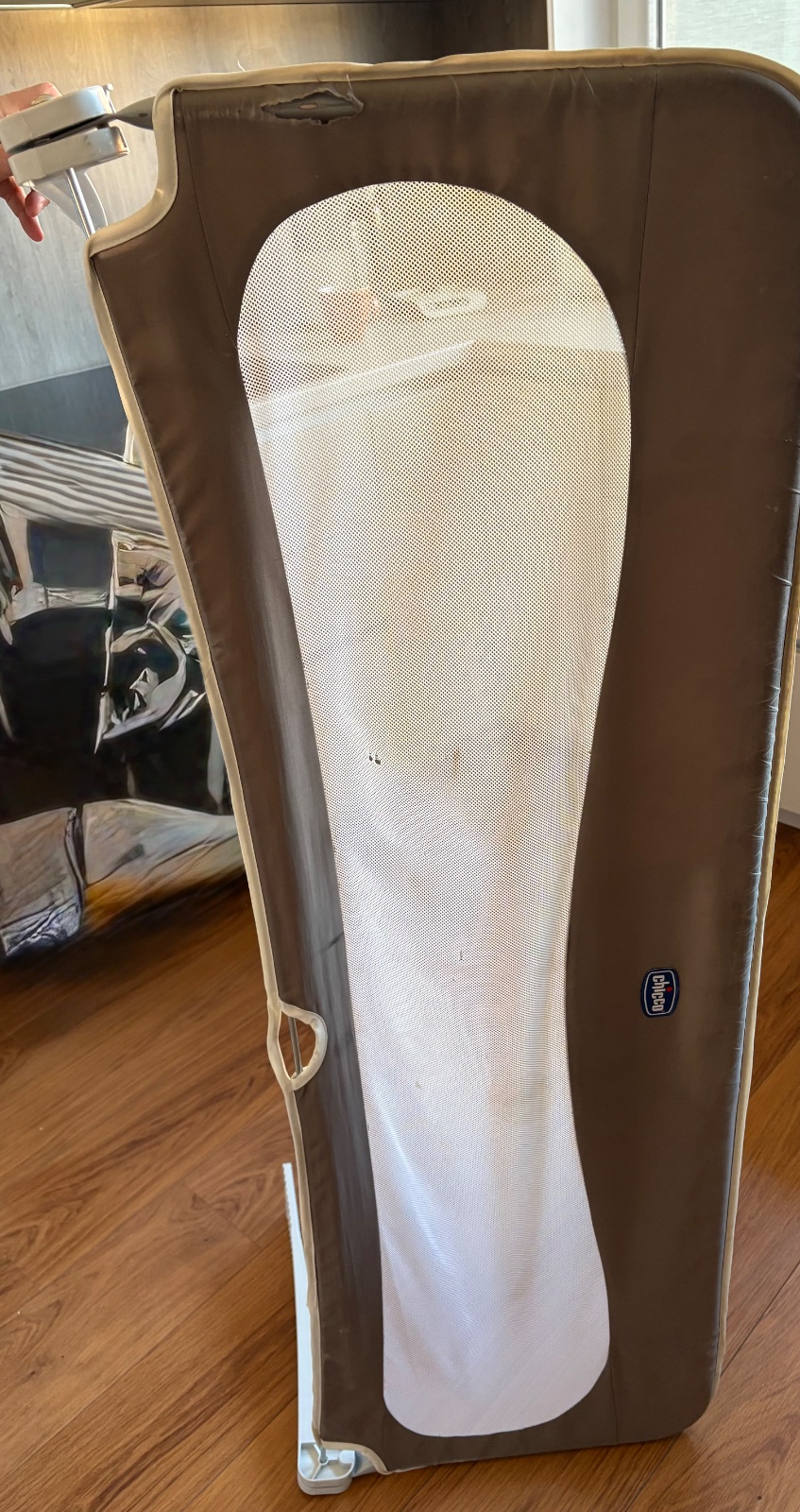 Používaná v bezchybnom stave. Na taške pre postieľku je malá dierka. Obe strany postieľky sú sieťované. Možnosť pristaviť k posteli rodičov. Vrecko a organizér na bočnej strane postieľky. Možnosť o...