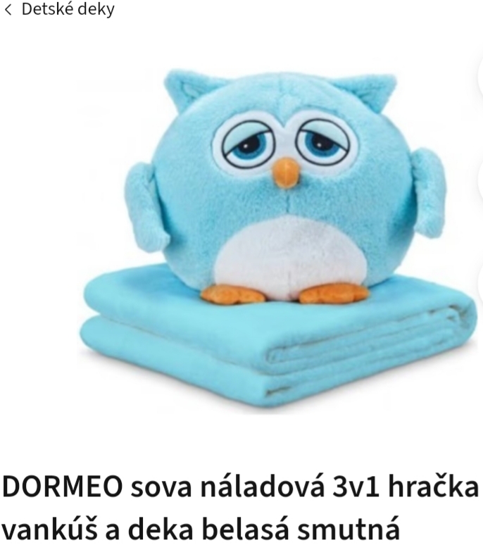 zaspatá náladová sovička so sady dormeo, iba rozbalená, vo vnutri je zazipsovaná deka rovnakej farby, ako hračka, vankúš aj prikrývka, mäkký príjemný materiál, v prípade potreby premeriam, ďakujem