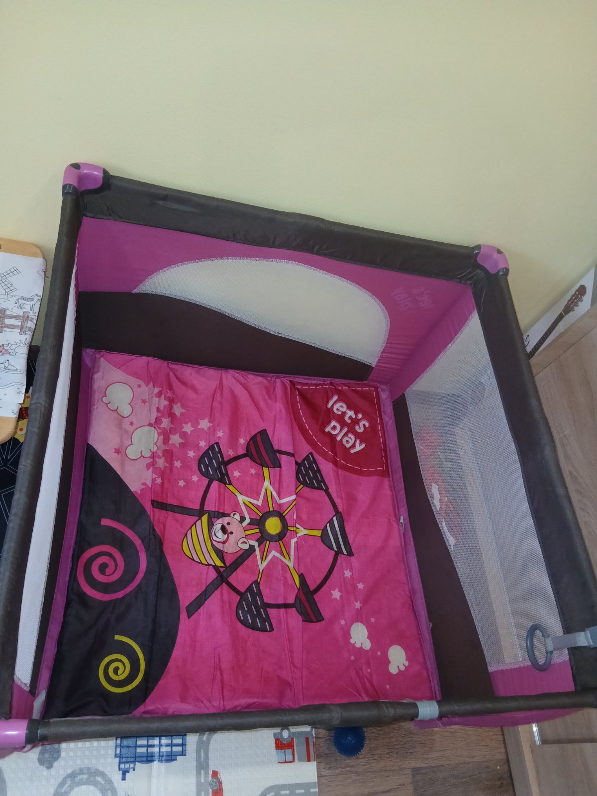 V super stave V prípade záujmu predám aj hraciu podložku ktorú sme mali v ohrádke pre väčšie pohodlie dieťatka..