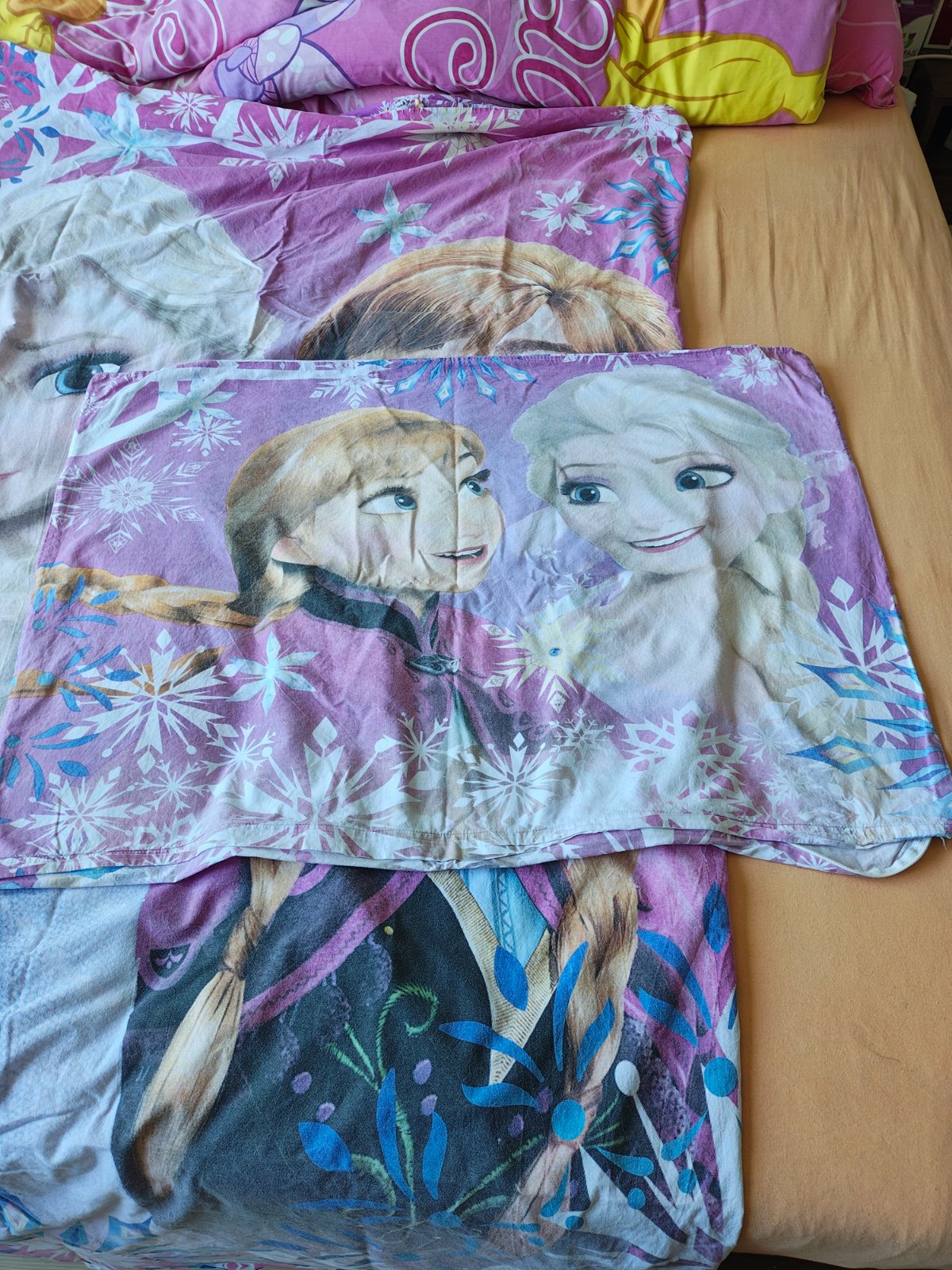 Predám obliečky FROZEN, zapínanie na zips, rozmery vankúš 70x90cm, perina 140x200cm. Perina je obojstranná (viď foto). Veľmi dobrý, zachovalý stav.