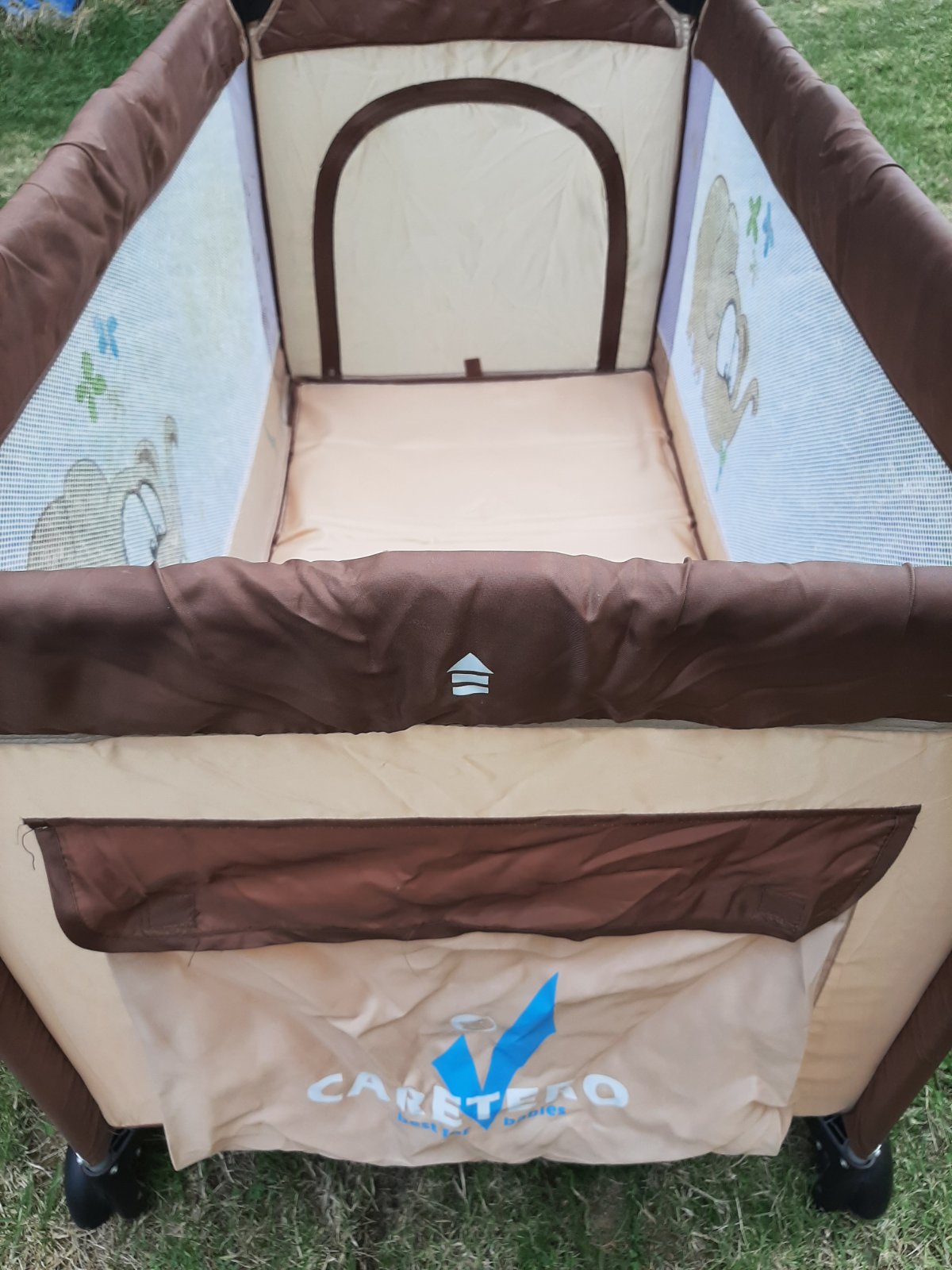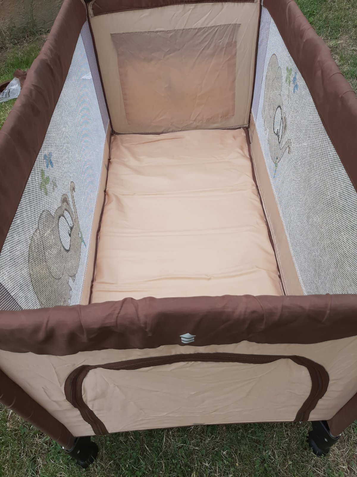 Používaná postieľka v dobrom stave, bočné dvierka na zips, brzda na kolieskach, ľahko sa skladá. Dávam ku nej aj matrac.