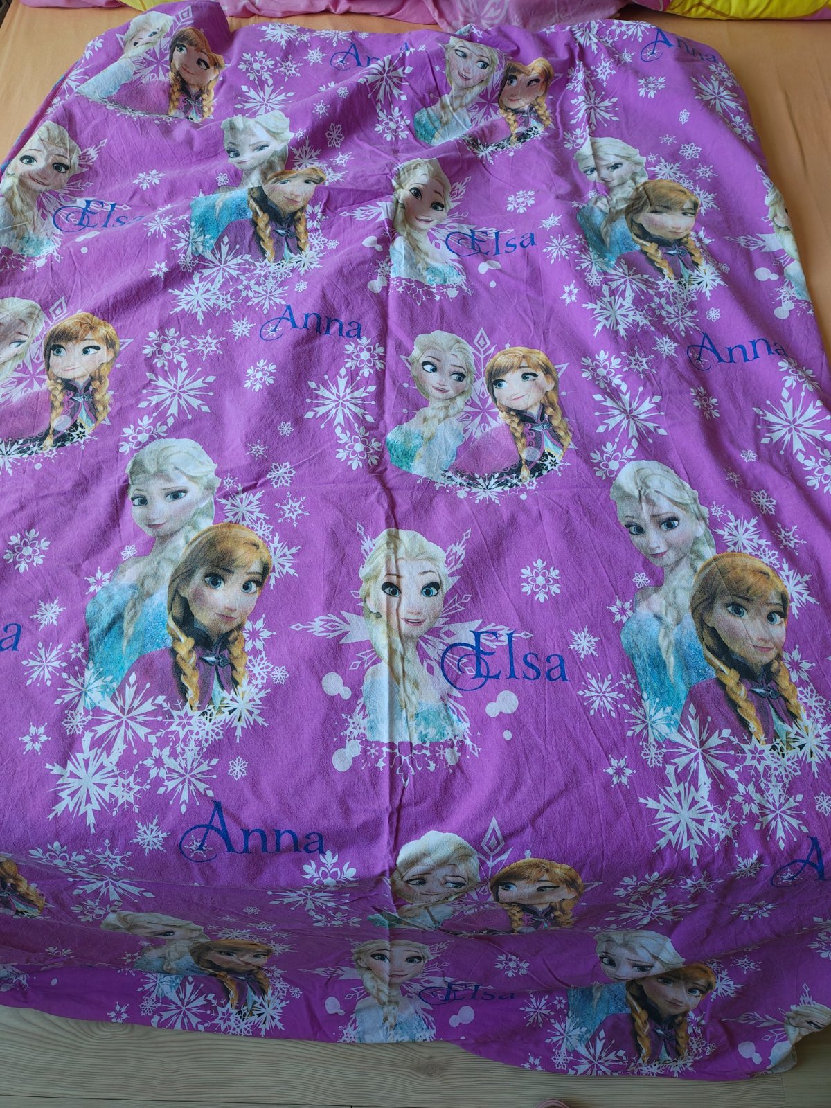 Predám obliečky FROZEN, zapínanie na zips, rozmery vankúš 70x90cm, perina 140x200cm. Perina je obojstranná (viď foto). Veľmi dobrý, zachovalý stav.