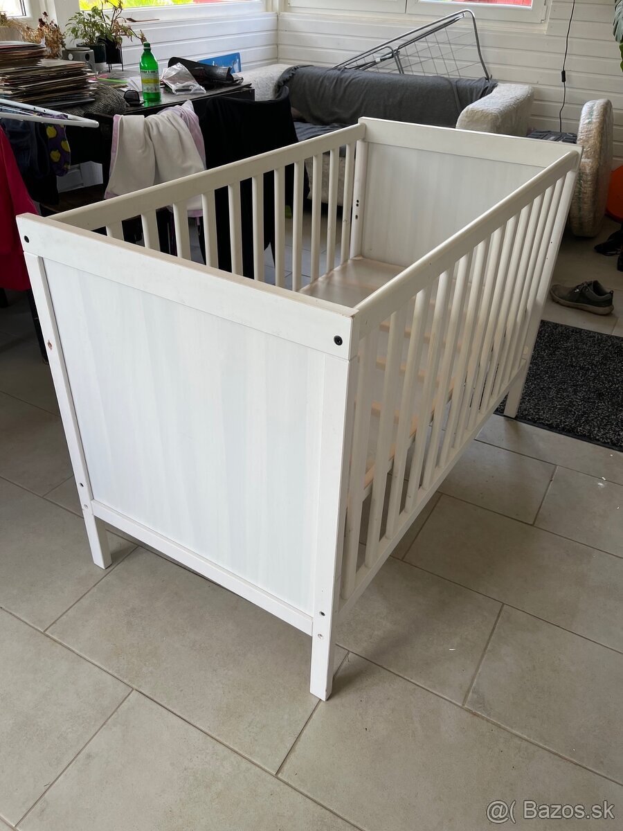 Predám posteľ SUNDVIK https://www.ikea.com/sk/sk/p/sundvik-detska-postielka-biela-00248567/ aj s matracom https://www.ikea.com/sk/sk/p/skoenast-penovy-matrac-do-postielky-70321012/ posteľ je rozobratá, kompletná. Sem tam jemne osuchy farby - nic vazne.
