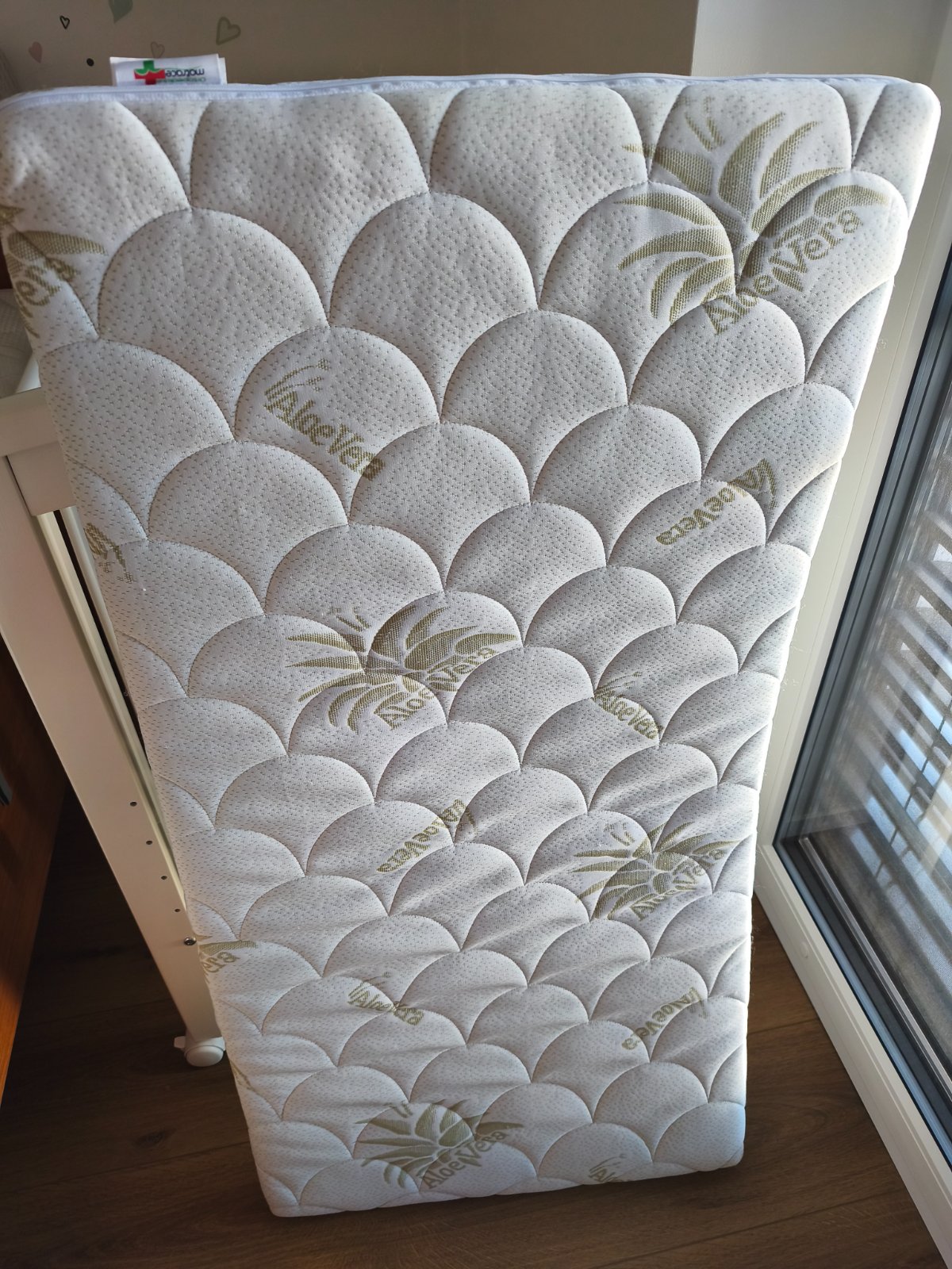 Matrac má poťah aloe Vera, vnútri HR pena + kokosová doska. Výška 6cm. Záruka tri roky (v záruke do 20.10.2026). Kupovaný cez ortopedicke-matrace.sk. Je v TOP stave, nakoľko syn spal v postieľke len pol roka a na matraci bol špeciálny antibakteriálny chránič + hniezdo, takže nebol nikdy precikaný. Kupovaný bol za 67, teraz už stojí 90 eur.