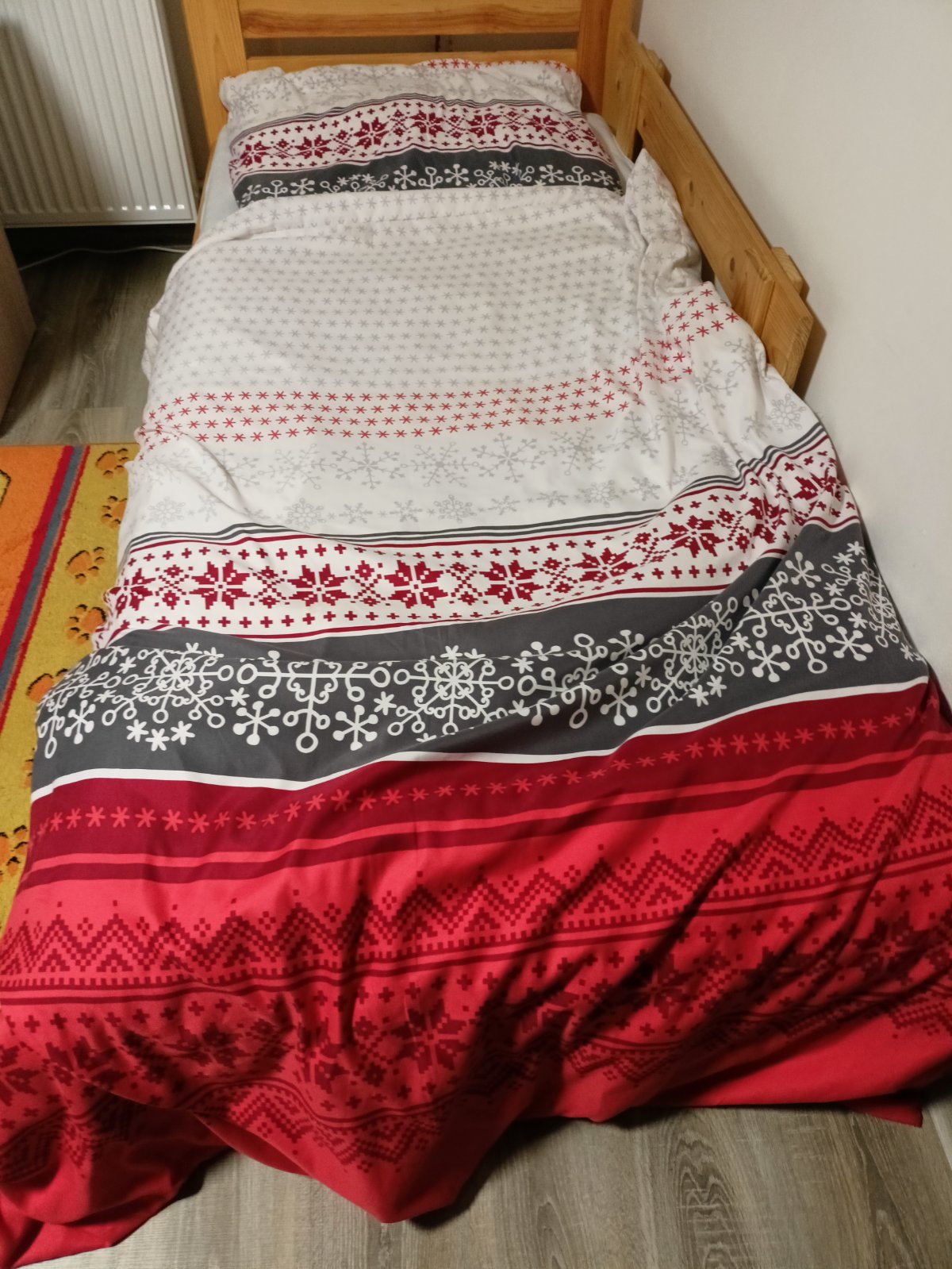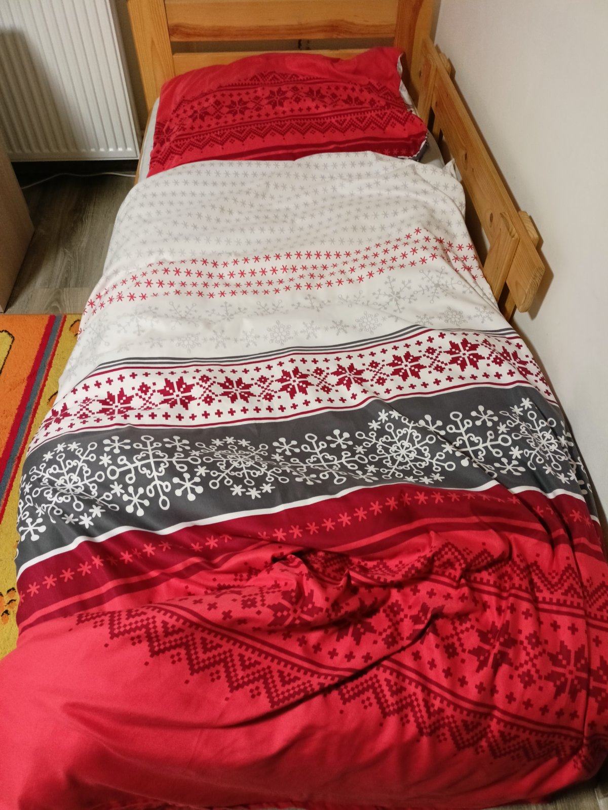 Vyrastli sme,no da sa este využiť. Rozmer je 140x200 a 70x40. Farby su pekne.