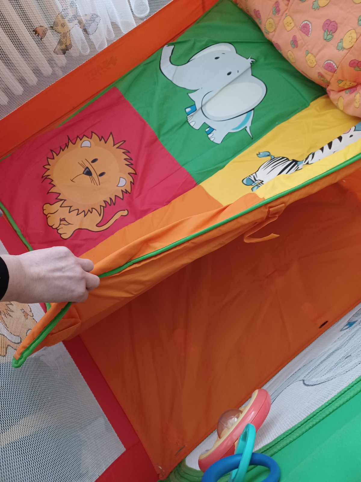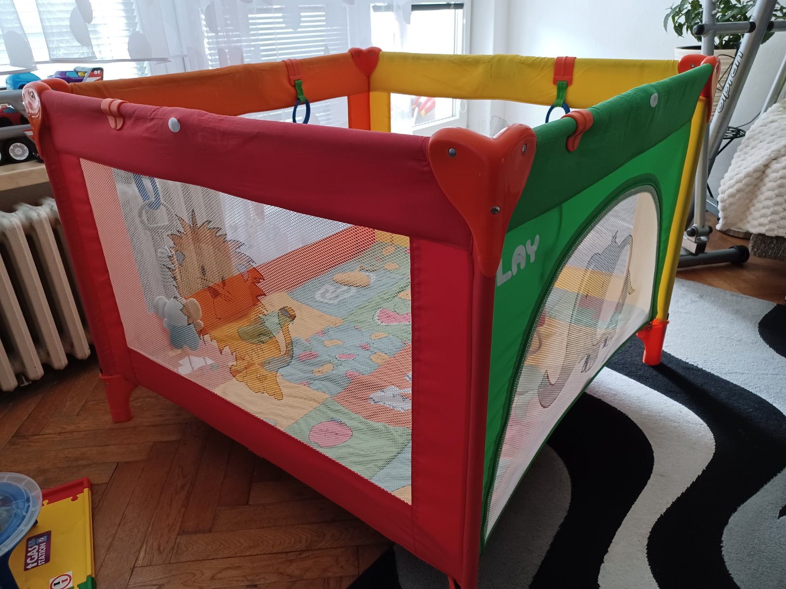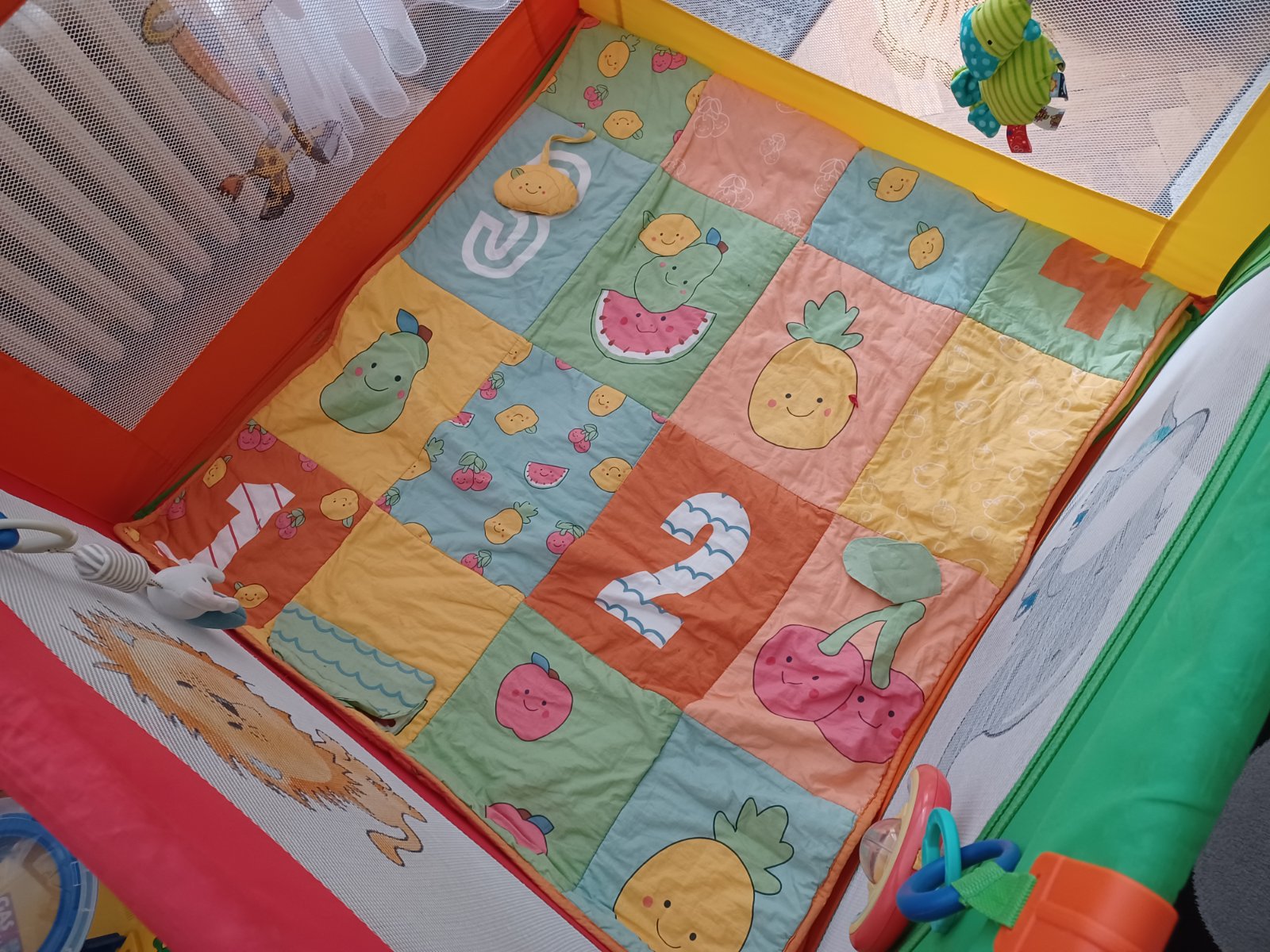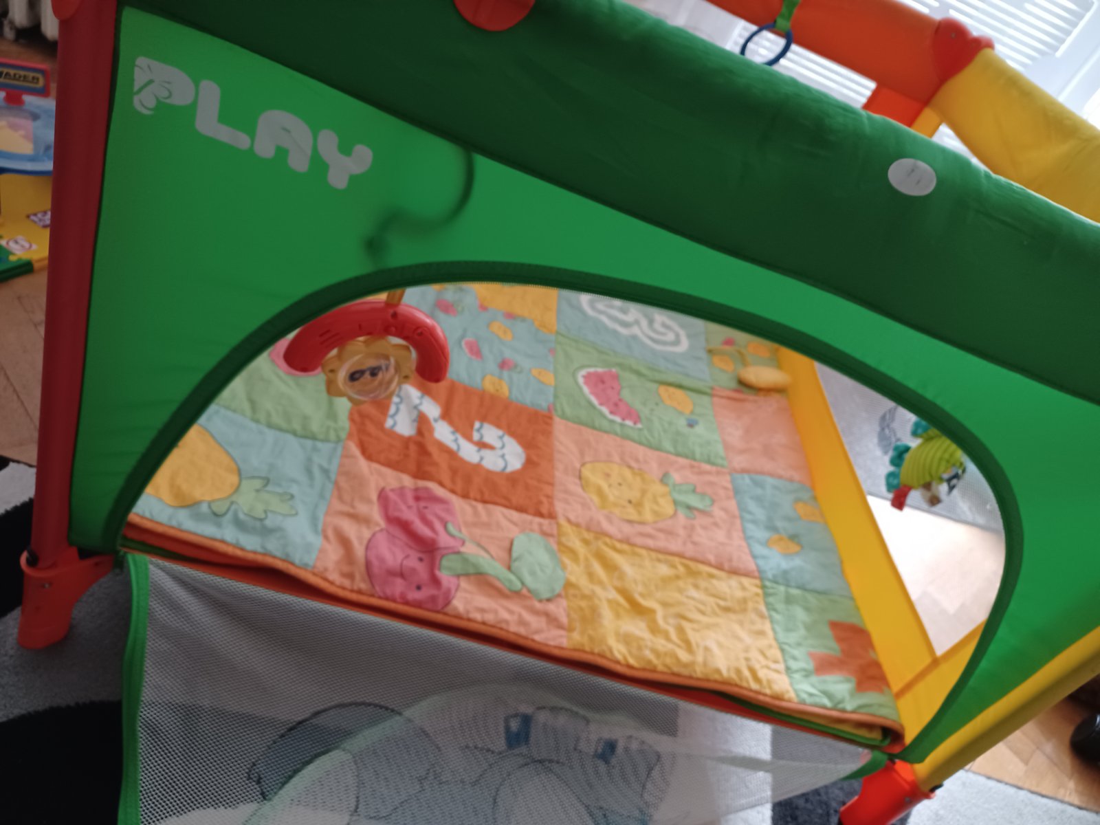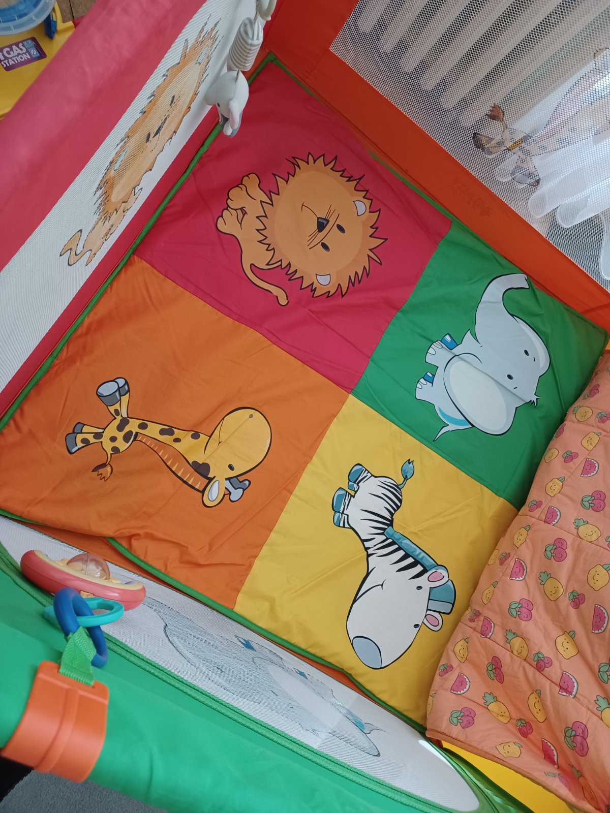 V prípade záujmu predám aj hraciu podložku ktorú sme mali v ohrádke pre väčšie pohodlie dieťatka..