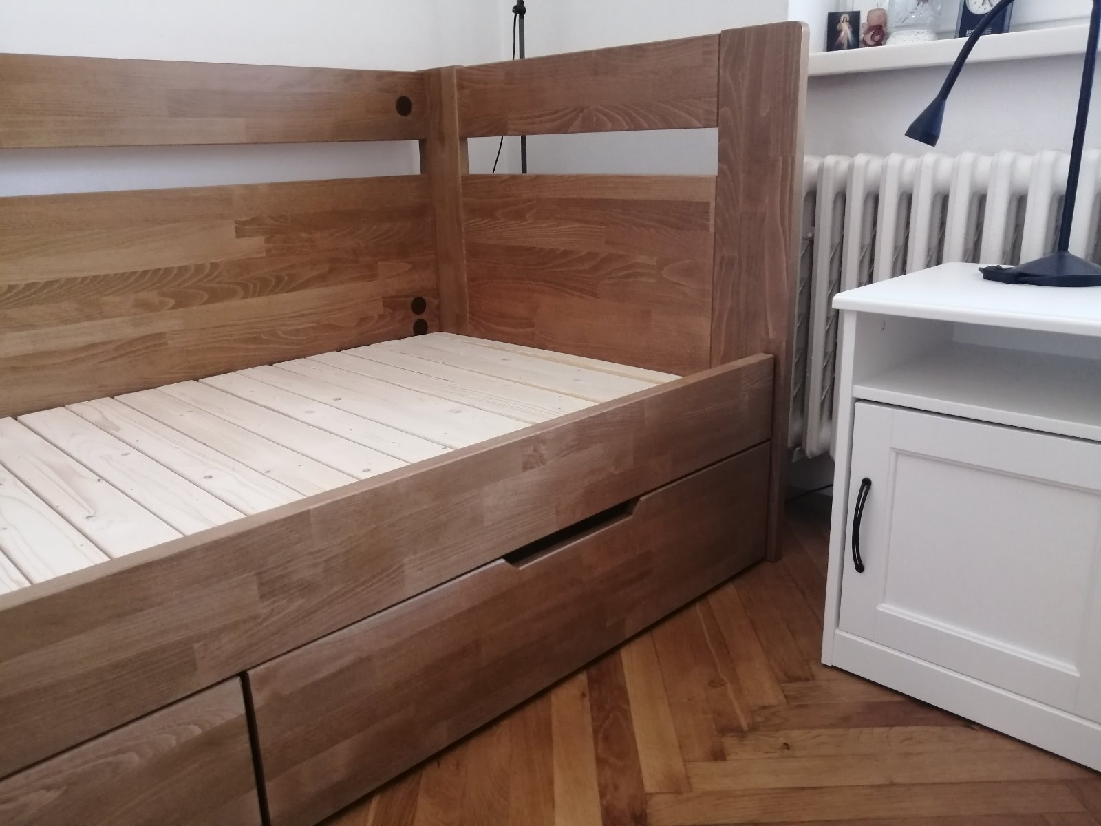 Ponúkam kvalitnú rozkladaciu posteľ TANDEM BUK z bukového masívu s úložným priestorom, vo výbornom stave, veľmi pevná, nevŕzga. Kupovaná nová, používaná 4 roky.